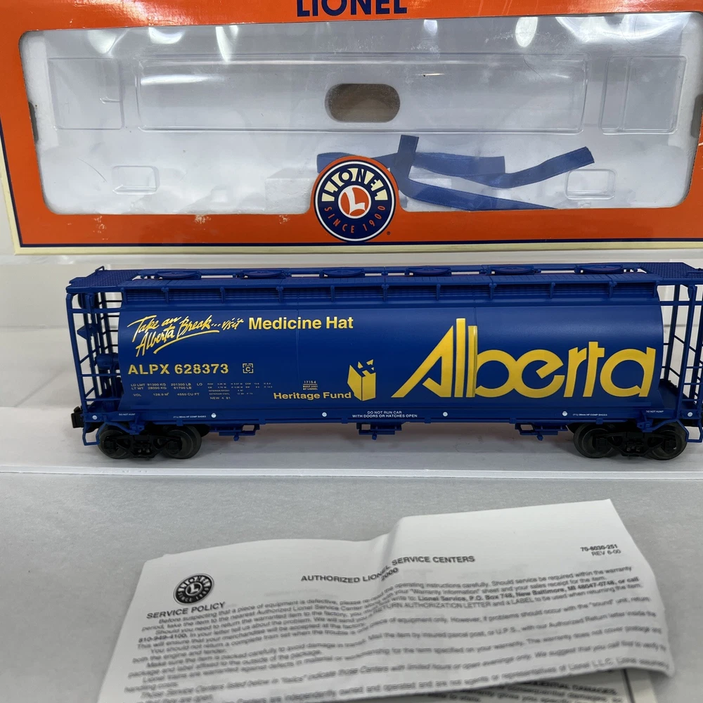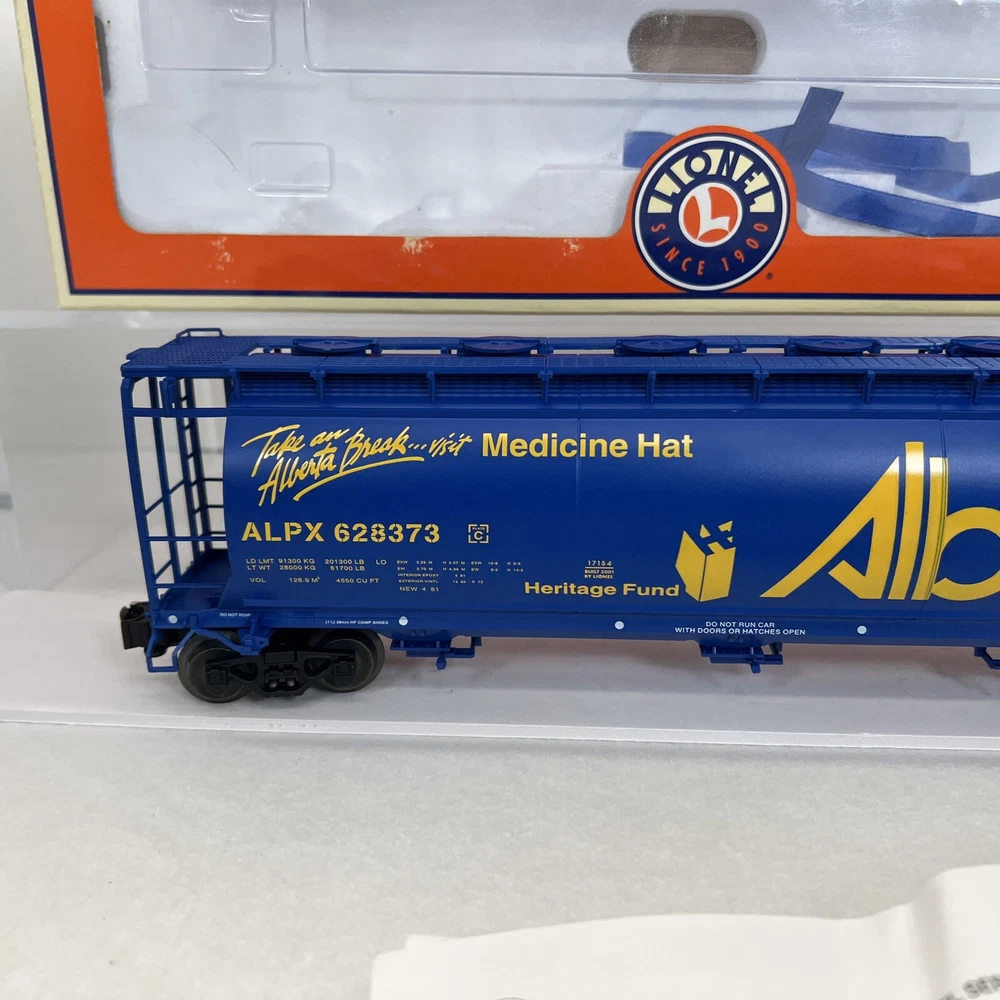 LIONEL #628373 ALBERTA CYLINDRICAL HOPPER O GAUGE THREE RAIL 6-17154 USED!! ORIGINAL BOX. WILL BE PACKED TO ENSURE SAFE DELIVERY ! Winning US bidder receives FREE SHIPPING USPS Priority UPS !! Canada Priority shipping is available . All other countries please email for a mailing quote. Thanks for looking! I ship everyday!!!!