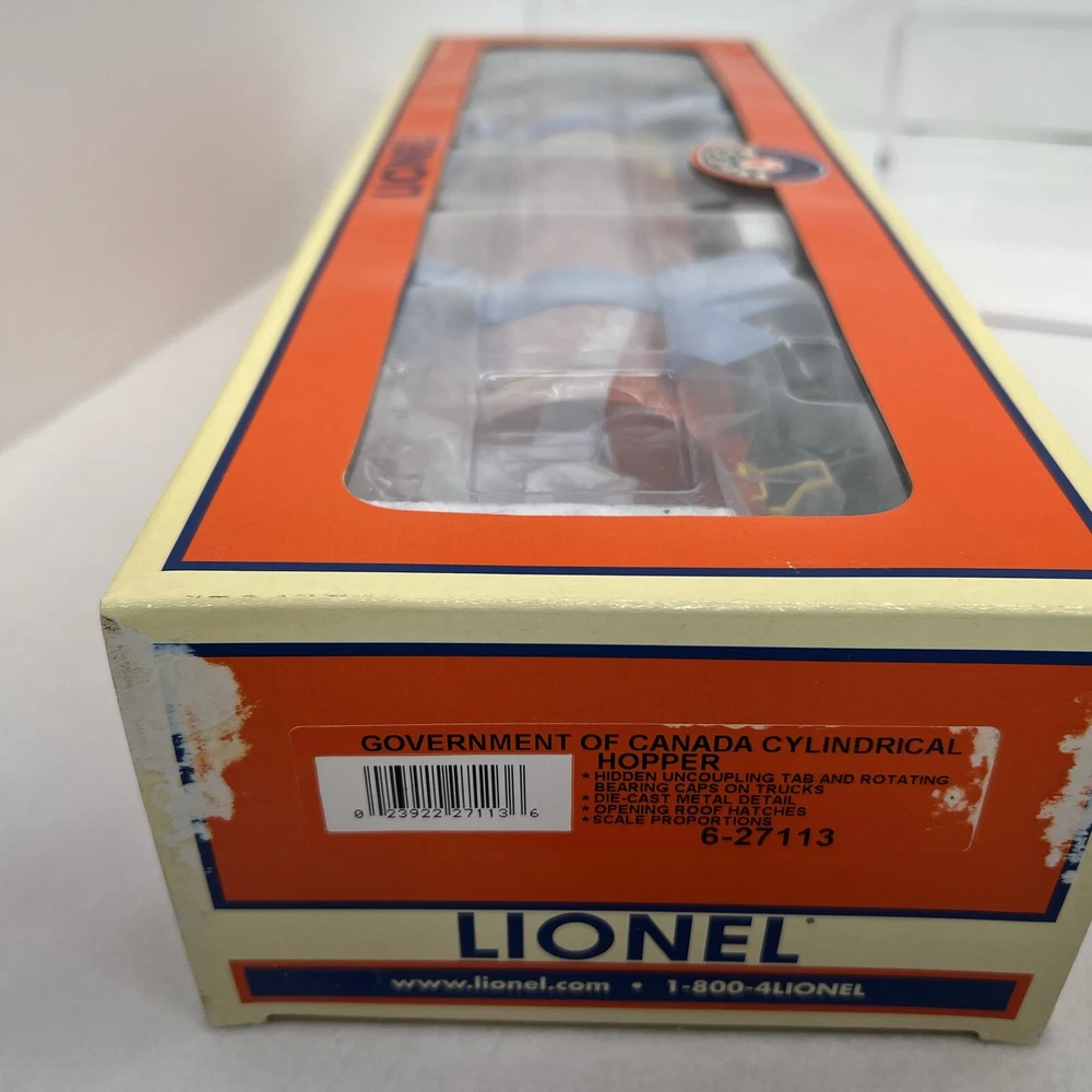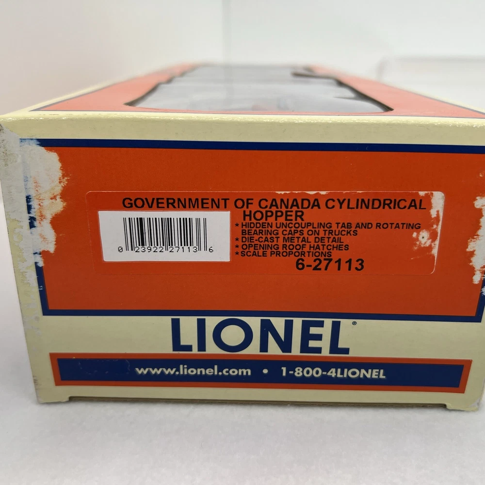 LIONEL #605415 GOVERNMENT OF CANADA CYLINDRICAL HOPPER O GAUGE THREE RAIL 6-27113 USED!! ORIGINAL BOX. WILL BE PACKED TO ENSURE SAFE DELIVERY ! Winning US bidder receives FREE SHIPPING USPS Priority UPS !! Canada Priority shipping is available . All other countries please email for a mailing quote. Thanks for looking! I ship everyday!!!!