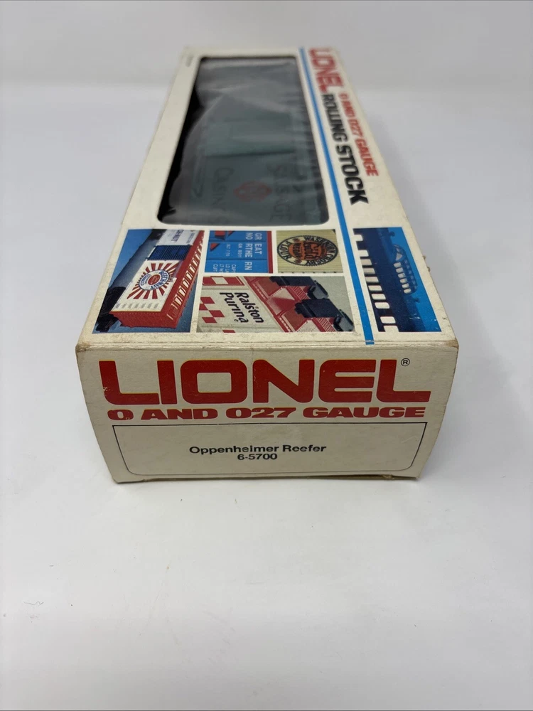The product is a Lionel Box Car in green color, specifically the Lionel 6-5700 Train Box Car Oppenheimer Casing Company Reefer Car. It is designed for O-27 gauge model railroads and features the branding of Lionel. Please refer to photos for condition very clean and well taken care of.