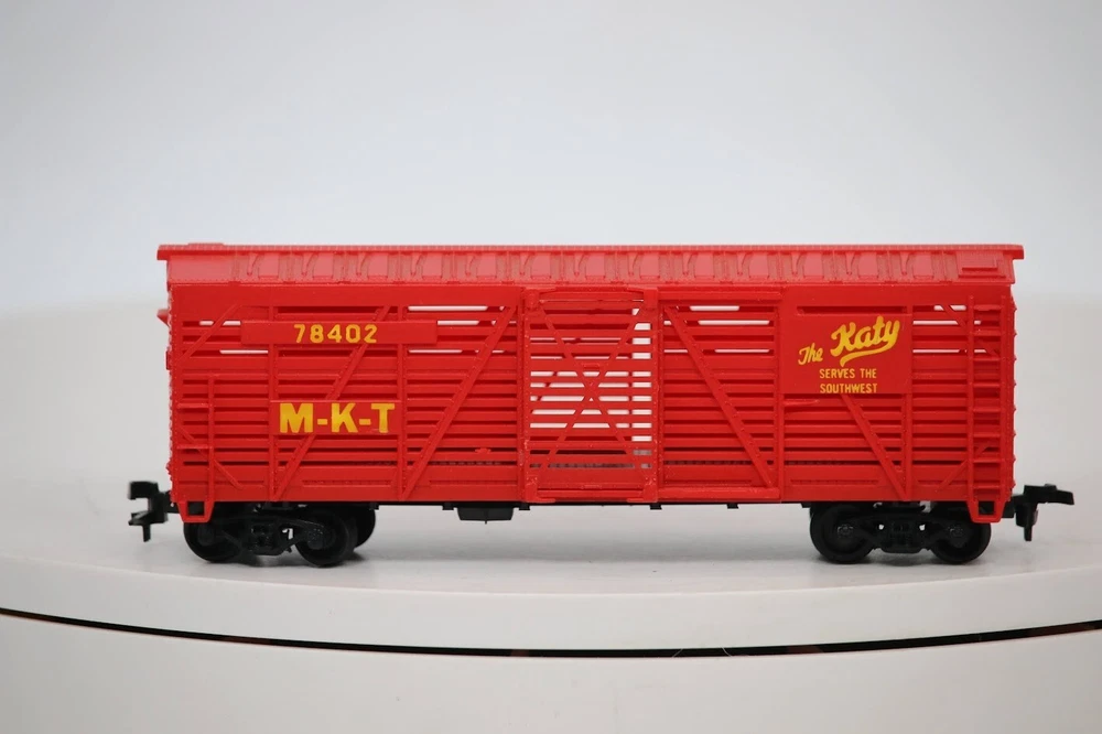 Lionel HO Scale "MKT - The Katy" 78402 40' Livestock Cattle Freight Train Car SKU#009223 Look closely at the pictures to see further details. We ships USPS PLEASE see photos for detailed condition!! PLEASE LOOK AT THE PHOTOS CAREFULLY BEFORE PURCHASING!! If you are purchasing more than one item from us and would like combined shipping, PLEASE request an adjusted invoice from us while still in the cart and BEFORE paying. eBay does not usually calculate combined shipping accurately and you might get overcharged. Please be aware that when we photograph items, we use lighting that will show the details well. Although we try to present the product as accurately as possible, the lighting may affect the overall look of the item by appearing lighter/darker or possibly a different hue than the actual item. Depending on the type of lighting you have in your home, there may be some differences between the photos and the actual item. If this is a concern of yours, please feel free to request additional photos made in natural lighting or ask for a more detailed description of the item PRIOR TO PURCHASE! PLEASE NOTE: We greatly appreciate your interest in our item for sale. We look forward to a pleasant, quick and satisfying transaction for everybody, so please note the following information before bidding. Thank you! ITEM DESCRIPTIONS: * We will try to describe items well and provide plenty of photos. Please review these carefully before bidding or purchasing. * Only the items pictured and described are what you will receive when purchased. * We will occasionally offer an item clearly marked "AS-IS". This means that we are not sure if it works because we are unable to test it for whatever reason. We will offer these at a discounted price then a similar "working" item. It is possible that these items will work fine, but it also is possible that these items are more useful for their parts. Please only bid on or purchase these items if you are well aware of this, as we will only provide refunds of actual item price (no shipping cost refunds) for these items. * If you have any questions that aren't addressed by the descriptions or photos, please feel free to ask before you bid. * There may be pieces that are missing or broken including, but not limited to, couplers, brake wheels, steps, ladders, railings, minor rust spots or cracks, etc. May need detailed cleaning SHIPPING: * We usually do not offer shipping to international addresses, but ARE WILLING TO TAKE CONSIDERATIONS. * We try to pack items as carefully as possible, but damage may occur during shipping. If you receive an item that was damaged in shipping, please contact us and we will work with you to resolve the problem. * We will combine shipping costs for all items the same buyer purchases from us within 2 days. Please wait to pay for items until you're done shopping with us. Please contact us if you're expecting to buy more items from us, or to have us adjust the shipping costs. * We will usually ship items out within 24 hours of payment being received Sunday through Friday at noon. We will notify the buyer if there will be a delay in shipping for some reason. Please allow additional time for holidays and weekends when the post office is closed. If payment is received after noon (EST) on Friday, the item might not be shipped until the following Monday. * We do try to recycle shipping materials as much as possible. RETURNS: We abide by eBay's Money Back Guarantee. We definitely want our customers to be happy with their purchase! You may return an item within 30 days of receiving it with the following guidelines: * If the item is defective or damaged (unless we clearly marked the listing "AS-IS"), the buyer will receive a full refund after the buyer returns it and it is received by us. Customers who falsely claim their item is defective, damaged, or not as described in order to receive a full refund and free return shipping will be permanently blocked from making future purchases from us. * If the item is as described (including "AS-IS" items) and the buyer decides for any other reason than defective/damaged to return it, only the actual price of the item will be refunded once it has been returned and it is received by us. The buyer will be asked to pay all original and return shipping charges. This includes all reasons other than defective/damaged, including wrong size, wrong type, changed mind, etc. All "AS-IS" items will fall into this category of return. Please make sure the item is what you want before purchasing it. * Please contact us before initiating a refund request. FEEDBACK: We always leave feedback at the end of transaction. We consider the transaction to be over when we receive feedback from the buyer confirming the item arrived satisfactorily. If you are unsatisfied with your purchase please contact us before leaving neutral or negative feedback. WE APPRECIATE POSITIVE FEEDBACK IF YOU ARE SATISFIED WITH YOUR PURCHASE! THANK YOU FOR YOUR INTEREST IN THIS ITEM!