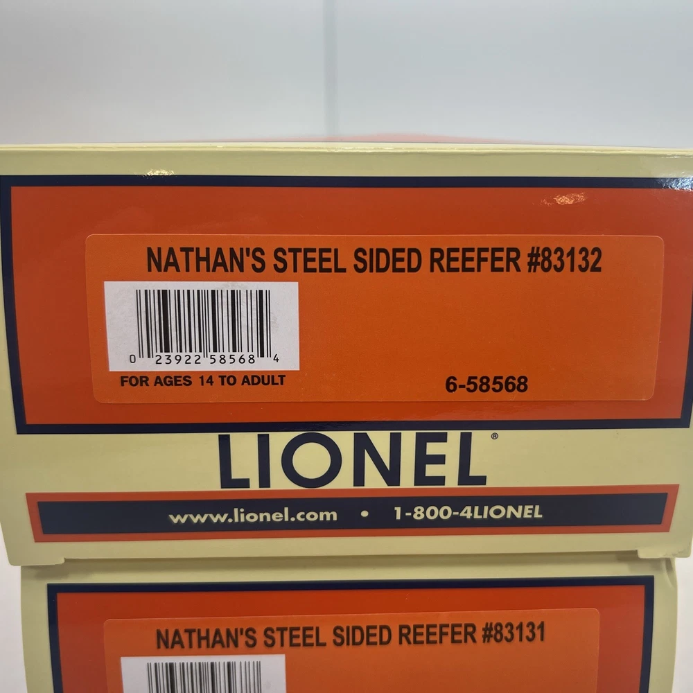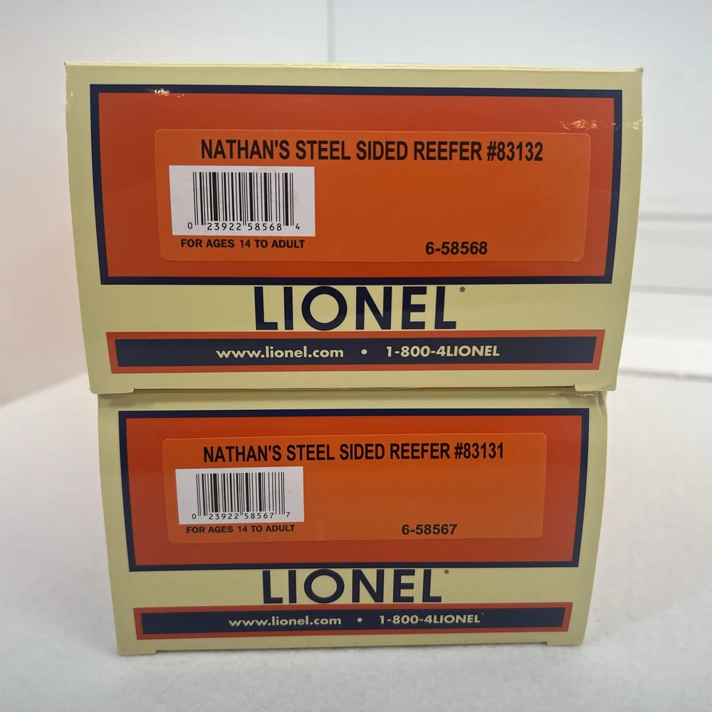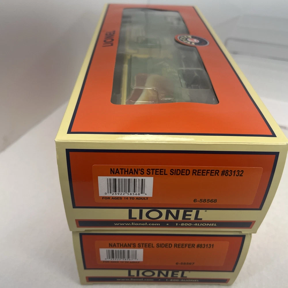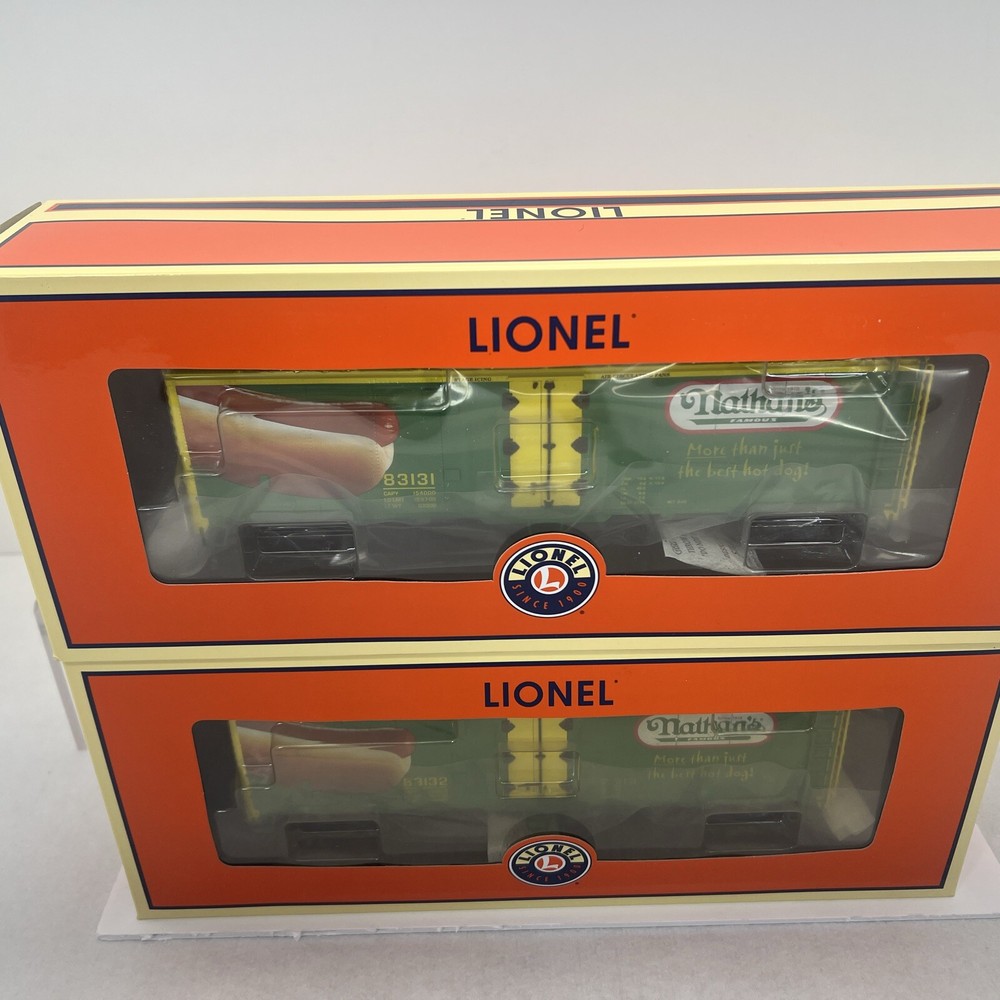 NASSAU LIONEL OPERATING ENGINEERS LOT OF 2 NATHAN'S HOT DOGS STEEL-SIDED REEFERS #83131 #83132 O GAUGE THREE RAIL 6-58567 6-58568 NEW! CLUB CARS. ORIGINAL BOXES. WILL BE PACKED TO ENSURE SAFE DELIVERY! Winning US bidder receives FREE SHIPPING USPS Priority UPS !! Canada Priority shipping is available . All other countries please email for a mailing quote. Thanks for looking! I ship everyday!!!!