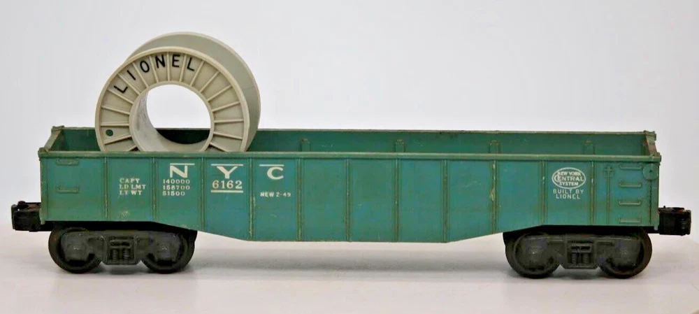 Lionel NYC RAILROAD CAR 6162 NEW YORK CENTRAL w/ Lionel Wire Spool SKU#007002 PLEASE see photos for detailed condition!! There may be pieces that are missing or broken including, but not limited too, couplers, brake wheels, steps, ladders, railings, etc. May need detailed cleaning. PLEASE LOOK AT THE PHOTOS CAREFULLY BEFORE PURCHASING!! If you are purchasing more than one item from us and would like combined shipping, PLEASE request an adjusted invoice from us while still in the cart and BEFORE paying. eBay does not usually calculate combined shipping accurately and you might get overcharged. Please be aware that when we photograph items, we use lighting that will show the details well. Although we try to present the product as accurately as possible, the lighting may affect the overall look of the item by appearing lighter/darker or possibly a different hue than the actual item. Depending on the type of lighting you have in your home, there may be some differences between the photos and the actual item. If this is a concern of yours, please feel free to request additional photos made in natural lighting or ask for a more detailed description of the item PRIOR TO PURCHASE! PLEASE NOTE: We greatly appreciate your interest in our item for sale. We look forward to a pleasant, quick and satisfying transaction for everybody, so please note the following information before bidding. Thank you! ITEM DESCRIPTIONS: * We will try to describe items well and provide plenty of photos. Please review these carefully before bidding or purchasing. * Only the items pictured and described are what you will receive when purchased. * We will occasionally offer an item clearly marked "AS-IS". This means that we are not sure if it works because we are unable to test it for whatever reason. We will offer these at a discounted price than a similar "working" item. It is possible that these items will work fine, but it also is possible that these items are more useful for their parts. Please only bid on or purchase these items if you are well aware of this, as we will only provide refunds of actual item price (no shipping cost refunds) for these items. * If you have any questions that aren't addressed by the descriptions or photos, please feel free to ask before you bid. SHIPPING: * We usually do not offer shipping to international addresses, but ARE WILLING TO TAKE CONSIDERATIONS. * We try to pack items as carefully as possible, but damage may occur during shipping. If you receive an item that was damaged in shipping, please contact us and we will work with you to resolve the problem. * We will combine shipping costs for all items the same buyer purchases from us within 2 days. Please wait to pay for items until you're done shopping with us. Please contact us if you're expecting to buy more items from us, or to have us adjust the shipping costs. * We will usually ship items out within 24 hours of payment being received Sunday through Friday at noon. We will notify the buyer if there will be a delay in shipping for some reason. Please allow additional time for holidays and weekends when the post office is closed. If payment is received after noon (EST) on Friday, the item might not be shipped until the following Monday. * We do try to recycle shipping materials as much as possible. RETURNS: We abide by eBay's Money Back Guarantee. We definitely want our customers to be happy with their purchase! You may return an item within 30 days of receiving it with the following guidelines: * If the item is defective or damaged (unless we clearly marked the listing "AS-IS"), the buyer will receive a full refund after the buyer returns it and it is received by us. Customers who falsely claim their item is defective, damaged, or not as described in order to receive a full refund and free return shipping will be permanently blocked from making future purchases from us. * If the item is as described (including "AS-IS" items) and the buyer decides for any other reason than defective/damaged to return it, only the actual price of the item will be refunded once it has been returned and it is received by us. The buyer will be asked to pay all original and return shipping charges. This includes all reasons other than defective/damaged, including wrong size, wrong type, changed mind, etc. All "AS-IS" items will fall into this category of return. Please make sure the item is what you want before purchasing it. * Please contact us before initiating a refund request. FEEDBACK: We always leave feedback at the end of transaction. We consider the transaction to be over when we receive feedback from the buyer confirming the item arrived satisfactorily. If you are unsatisfied with your purchase please contact us before leaving neutral or negative feedback. WE APPRECIATE POSITIVE FEEDBACK IF YOU ARE SATISFIED WITH YOUR PURCHASE! THANK YOU FOR YOUR INTEREST IN THIS ITEM!
