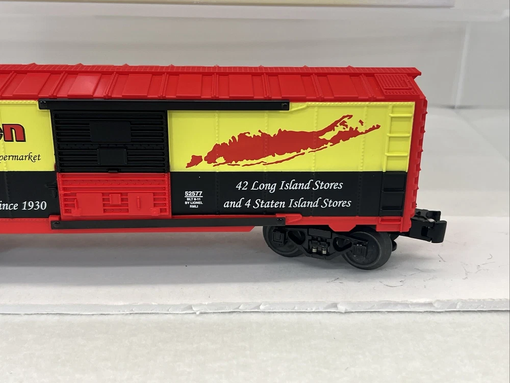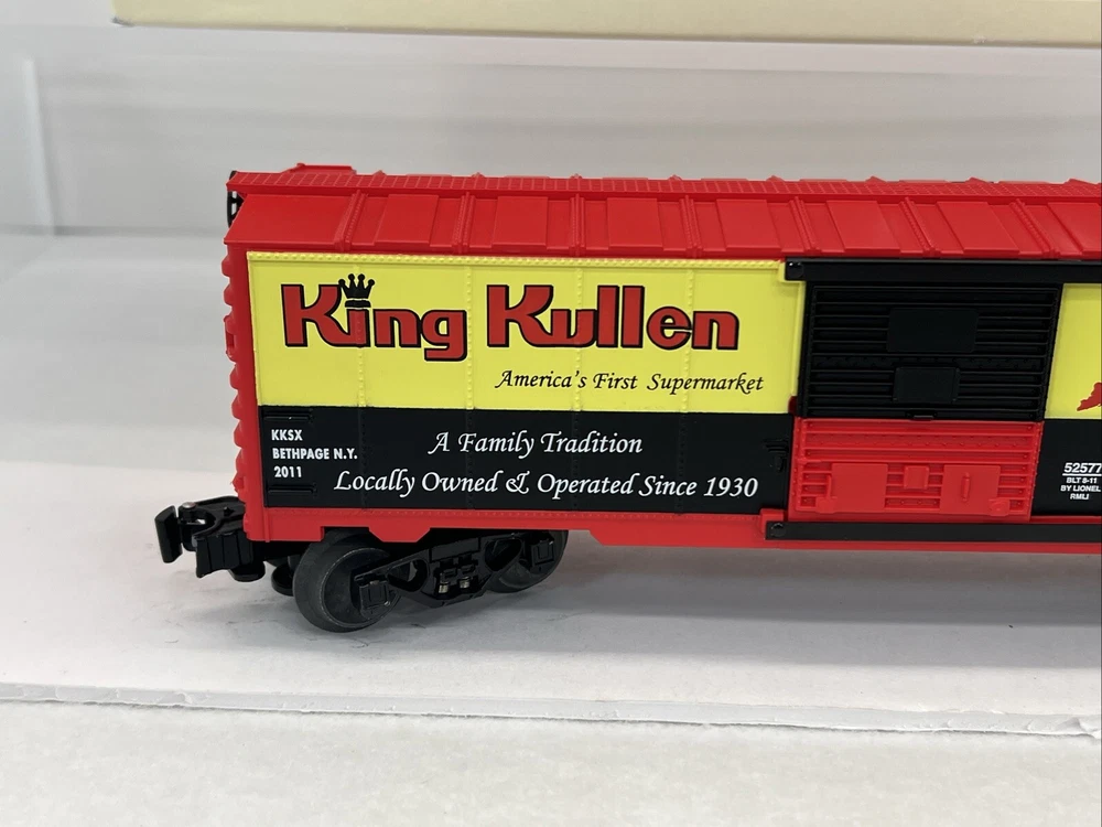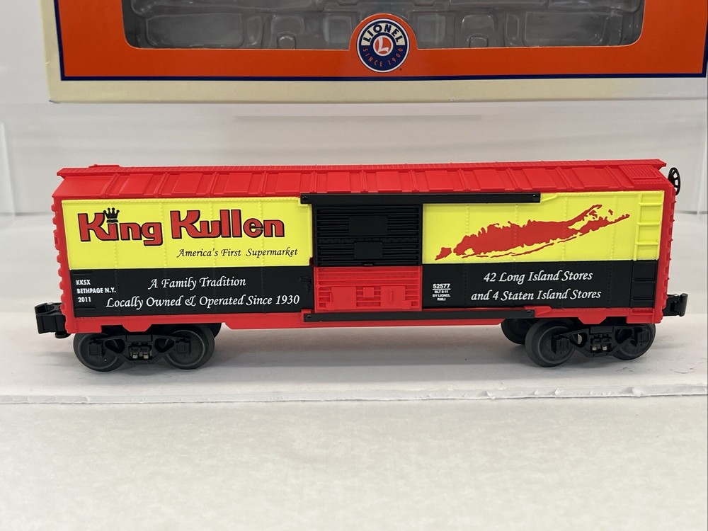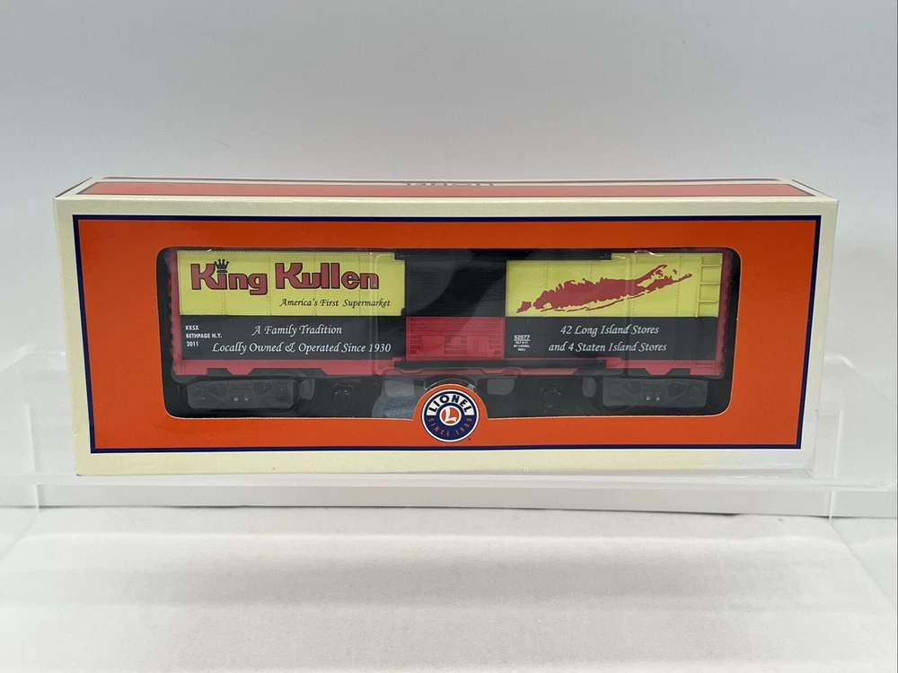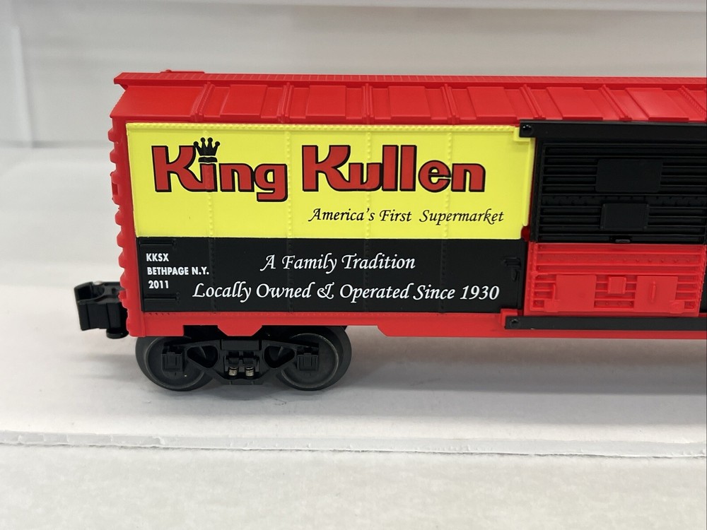 RAILROAD MUSEUM OF LONG ISLAND 2011 KING KULLEN SUPERMARKET BOXCAR O GAUGE 3-RAIL 6-52577 NEW!! CLUB CAR. ORIGINAL BOX. WILL BE PACKED TO ENSURE SAFE DELIVERY ! Winning US bidder receives FREE SHIPPING USPS Priority UPS !! Canada Priority shipping is available . All other countries please email for a mailing quote. Thanks for looking! I ship everyday!!!!