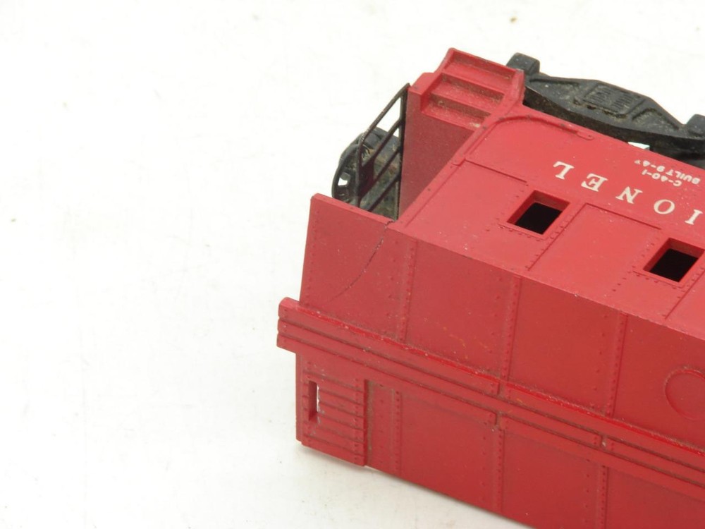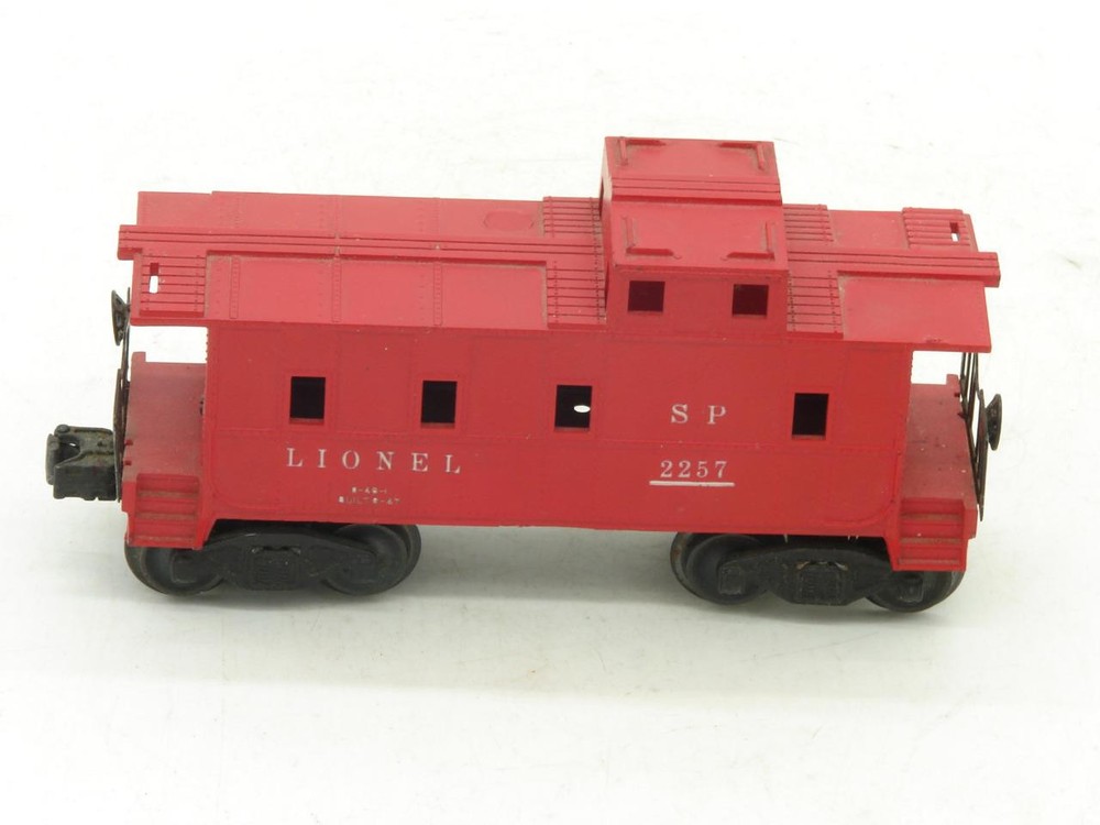Thanks for looking. Offered, is a Lionel Red 2257 Caboose. Lionel caboose in "good" overall condition. Car is complete but does have a break / crack on the right front roof overhang. Balance of the car is in good condition. Underside of the frame is in good condition with no rust. Car rides on staple end trucks. Electric coupler has been tested and does work. Car weighs under 1 pound packed for shipping. Lionel O Gauge Postwar 2257 Caboose Lionel O Gauge Postwar 2257 Caboose Click images to enlarge Description Thanks for looking. Offered, is a Lionel Red 2257 Caboose. Lionel caboose in "good" overall condition. Car is complete but does have a break / crack on the right front roof overhang. Balance of the car is in good condition. Underside of the frame is in good condition with no rust. Car rides on staple end trucks. Electric coupler has been tested and does work. Car weighs under 1 pound packed for shipping. I happily combine shipping. Please use the shopping cart to add the items you are interested in and request a total. A revised invoice with updated shipping will be sent. You can also complete checkout right away, and I will refund any overage paid. Please keep in mind that shipping charges continue to rise. I do not look to make a profit from shipping, the rates are quoted by the carrier and are passed along. Because of the increase in shipping, it is in many cases cheaper to ship 2 or more items together in the same box when you cost average things. Please look to see if there is anything else of interest that can help to lower the overall cost, especially if that other item was something you were interested in anyways. I do try to offer as many shipping options as possible to suit your needs, both as far as cost goes, and speed at which you receive an item. International shipping available. Payment Payments can be made by way of PayPal. Please feel free to email me with any payment questions you may have. Payments are due within 7 days of the auction(s) ending. I will extend the payment period if you are bidding on multiple items. Please let me know when you have completed bidding for items you are interested in, and are ready to receive the corrected totoal for your multi-item purchase. Please do not pay for multi-item purchases until you have received a corrected invoice total. Keep in mind this could take up to an extra day to receive your total. Shipping I happily combine shipping on all purchases. Shipping is made by way of USPS mail. You will have the choice of First Class, Parcel Post/Select, Priority Mail, or Express Mail. These choices will be based upon availabilty for the package size / weight, and destination. I try to offer every available shipping method for your purchase. International Shipping. I happily ship all train / hobby/ collectable items world wide. Please contact me for details to make sure your country does not have shipping restrictions. Please keep in mind that shipping times are estimates, and parcels may be held up by customs. International shipping is by way of USPS Mail. Your choice of First Class Package, Priority International, or Express Mail International. NOTE: First class package may not be available for large orders. International Customs Fees. Additioanl import or duties fees may be charged by your country. These potential fees are not included in the shipping paid on your purchase. Please contact your customs / duties office to check on any additional fees that could due. FEEL FREE TO CONTACT ME WITH ANY SHIPPING QUESTIONS YOU MAY HAVE. Terms of Sale Due to the nature of the items being offered for sale, purchases are considered final. Every effort is made to give as honest a review of an item being offered as possible. Since many of these items are vintage, proper operation of these items is difficult to guarantee. Most items are either bench tested, or tested on a layout prior to listing. Please feel free to contact me prior to bidding or purchasing an item if you have any additional questions you would like answered. Contact Us Please feel free to contact me with any questions you may have about an item being offered for sale. I will do my best to get back back in touch with you the same or very next day. Images sell! Get Supersized Images & Free Image Hosting Create your brand with Auctiva's Customizable Templates. Attention Sellers - Get Templates Image Hosting, Scheduling at Auctiva.com. Track Page Views With Auctiva's Counter