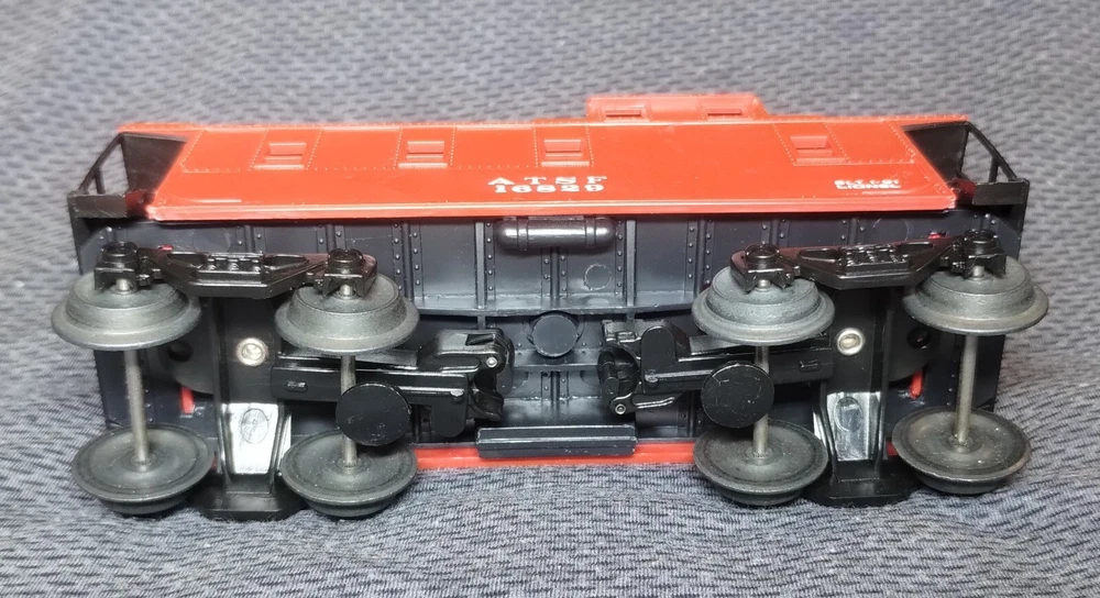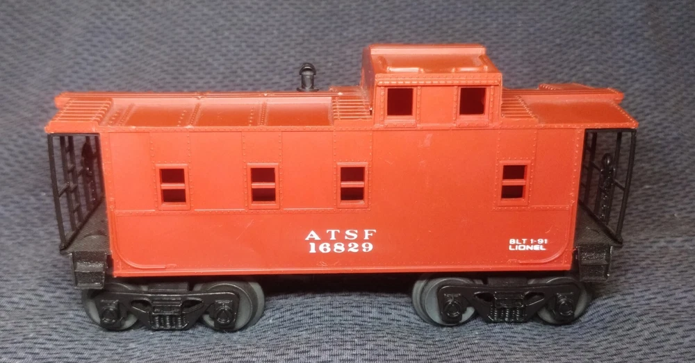 Crafted by Lionel, this O Gauge Santa Fe Caboose 16829 is a detailed replica of the iconic caboose car, complete with the distinct red paint scheme that's synonymous with the ATSF (Atchison, Topeka, Santa Fe) railroad. It's a true reflection of the era. This caboose is in good clean working condition. It has no box.