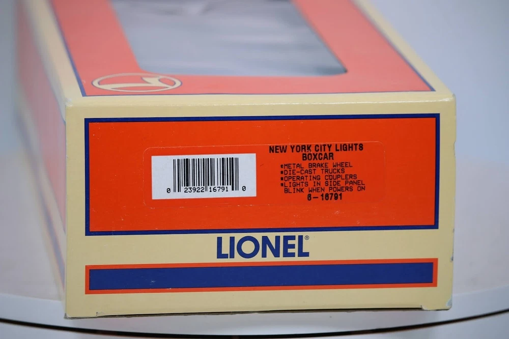 Lionel Train New York City Lights Boxcar 6-16791 with Box Look closely at the pictures to see further details. We ships USPS PLEASE see photos for detailed condition!! PLEASE LOOK AT THE PHOTOS CAREFULLY BEFORE PURCHASING!! If you are purchasing more than one item from us and would like combined shipping, PLEASE request an adjusted invoice from us while still in the cart and BEFORE paying. eBay does not usually calculate combined shipping accurately and you might get overcharged. Please be aware that when we photograph items, we use lighting that will show the details well. Although we try to present the product as accurately as possible, the lighting may affect the overall look of the item by appearing lighter/darker or possibly a different hue than the actual item. Depending on the type of lighting you have in your home, there may be some differences between the photos and the actual item. If this is a concern of yours, please feel free to request additional photos made in natural lighting or ask for a more detailed description of the item PRIOR TO PURCHASE! PLEASE NOTE: We greatly appreciate your interest in our item for sale. We look forward to a pleasant, quick and satisfying transaction for everybody, so please note the following information before bidding. Thank you! ITEM DESCRIPTIONS: * We will try to describe items well and provide plenty of photos. Please review these carefully before bidding or purchasing. * Only the items pictured and described are what you will receive when purchased. * We will occasionally offer an item clearly marked "AS-IS". This means that we are not sure if it works because we are unable to test it for whatever reason. We will offer these at a discounted price then a similar "working" item. It is possible that these items will work fine, but it also is possible that these items are more useful for their parts. Please only bid on or purchase these items if you are well aware of this, as we will only provide refunds of actual item price (no shipping cost refunds) for these items. * If you have any questions that aren't addressed by the descriptions or photos, please feel free to ask before you bid. * There may be pieces that are missing or broken including, but not limited to, couplers, brake wheels, steps, ladders, railings, minor rust spots or cracks, etc. May need detailed cleaning SHIPPING: * We usually do not offer shipping to international addresses, but ARE WILLING TO TAKE CONSIDERATIONS. * We try to pack items as carefully as possible, but damage may occur during shipping. If you receive an item that was damaged in shipping, please contact us and we will work with you to resolve the problem. * We will combine shipping costs for all items the same buyer purchases from us within 2 days. Please wait to pay for items until you're done shopping with us. Please contact us if you're expecting to buy more items from us, or to have us adjust the shipping costs. * We will usually ship items out within 24 hours of payment being received Sunday through Friday at noon. We will notify the buyer if there will be a delay in shipping for some reason. Please allow additional time for holidays and weekends when the post office is closed. If payment is received after noon (EST) on Friday, the item might not be shipped until the following Monday. * We do try to recycle shipping materials as much as possible. RETURNS: We abide by eBay's Money Back Guarantee. We definitely want our customers to be happy with their purchase! You may return an item within 30 days of receiving it with the following guidelines: * If the item is defective or damaged (unless we clearly marked the listing "AS-IS"), the buyer will receive a full refund after the buyer returns it and it is received by us. Customers who falsely claim their item is defective, damaged, or not as described in order to receive a full refund and free return shipping will be permanently blocked from making future purchases from us. * If the item is as described (including "AS-IS" items) and the buyer decides for any other reason than defective/damaged to return it, only the actual price of the item will be refunded once it has been returned and it is received by us. The buyer will be asked to pay all original and return shipping charges. This includes all reasons other than defective/damaged, including wrong size, wrong type, changed mind, etc. All "AS-IS" items will fall into this category of return. Please make sure the item is what you want before purchasing it. * Please contact us before initiating a refund request. FEEDBACK: We always leave feedback at the end of transaction. We consider the transaction to be over when we receive feedback from the buyer confirming the item arrived satisfactorily. If you are unsatisfied with your purchase please contact us before leaving neutral or negative feedback. WE APPRECIATE POSITIVE FEEDBACK IF YOU ARE SATISFIED WITH YOUR PURCHASE! THANK YOU FOR YOUR INTEREST IN THIS ITEM!