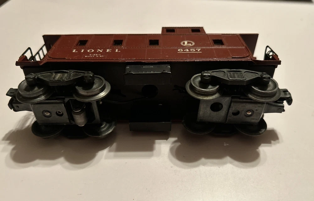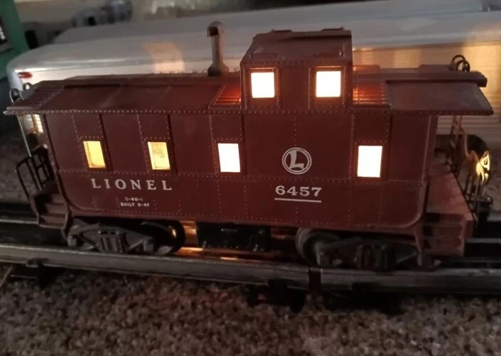 Lionel 6457 Lighted Deluxe Caboose Car...super nice condition, see pics.... This one belong to my dad, he took excellent care of it, see pictures. In clean condition.. Sold as found and as pictured works fine. Metal trucks couplers both ends, interior light.