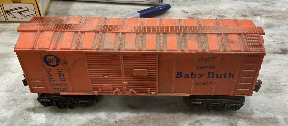 Lionel trains 1950 toy train car Baby Ruth found in garage rafters estate sale