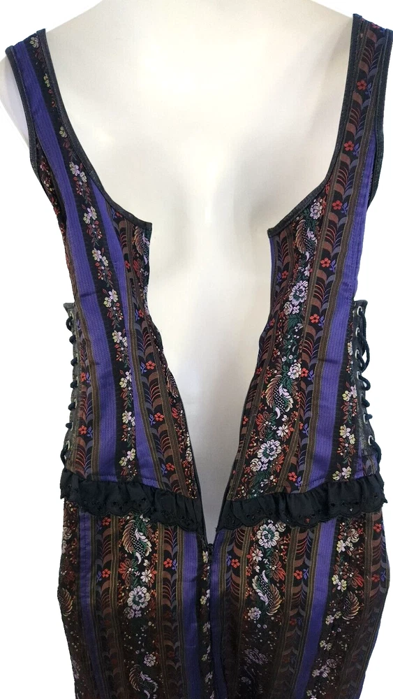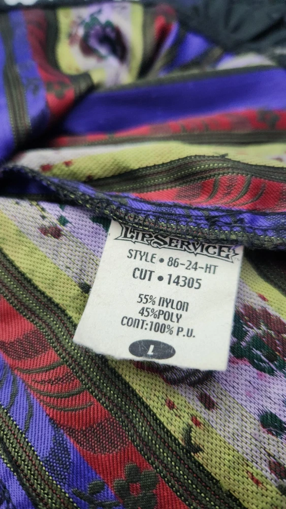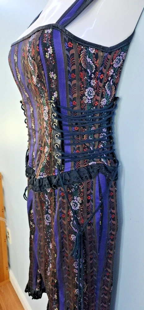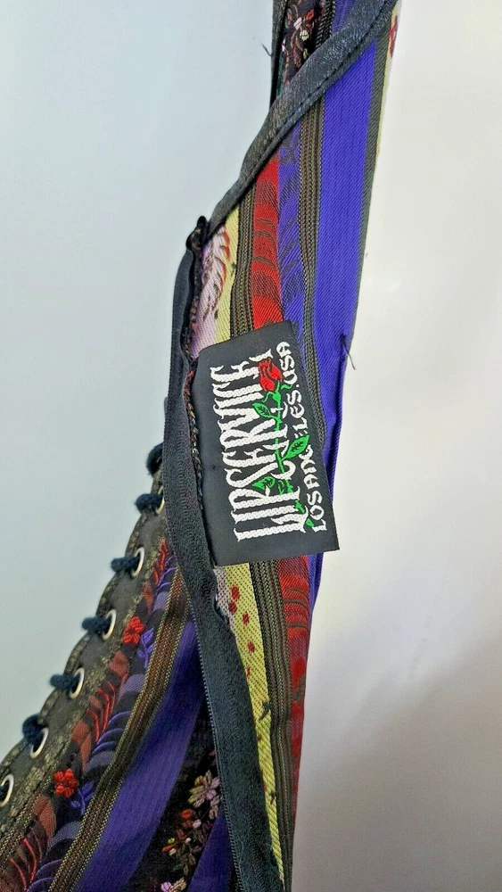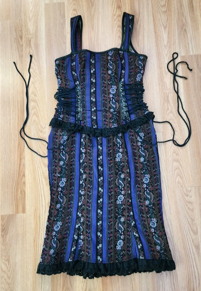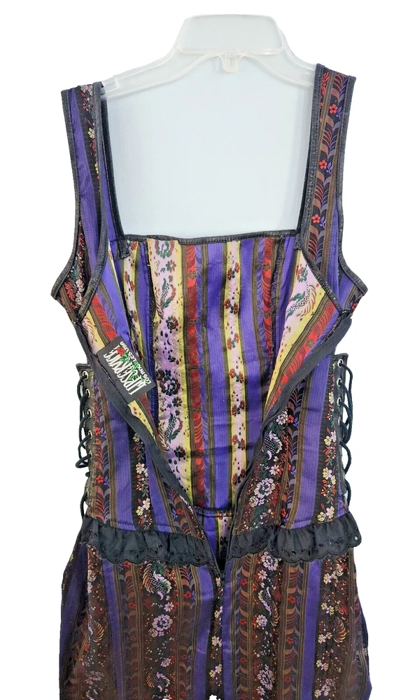 Lip Service Purple Floral Corset lace up Y2K Goth Dangerous Liaisons Dress Lip Service Los Angeles 2002 Fetish Classics Pencil Corset Dress Style 86 - 24 - HT Cut - 14305 "Large" size Measurements taken by seller: Measurements are taken with the dress laying flat Measurements in Inches Chest- 34" Waist- 28" (can be adjusted to smaller) Hips (at lace) - 34" Hips (widest part) - 36" Length (From top of zipper to base of skirt) - 34" Length (From top of shoulder strap to base of skirt) - 39" Condition information: Item is pre-owned and shows some signs of wear. Most notably some minor piling in places and some minor fraying along the edge of the lace details. The leather/pleather parts around the corset holes is notably crinkled and can be seen in photos. There are no notable tears or major damage on this dress. The zipper zips up and down very smoothly/without any kind of snags. Dress has been gently cleaned and comes from a non-smoking household Please feel free to ask any questions about this dress, I am willing to provide more pictures of this item upon request. Will be sent USPS PRIORITY MAIL. **Signature upon delivery can be requested upon purchase.** I am willing to ship this dress via other shipping options if buyer wants, but if not specified I will be shipping this USPS Priority mail. Will be packed in a plastic clothing bag and shipped in a box to ensure safe delivery! Dress will be gently folded. And the tassels or strings for the corset sides will be loosely tied like seen in photos to help prevent them from being tangled.