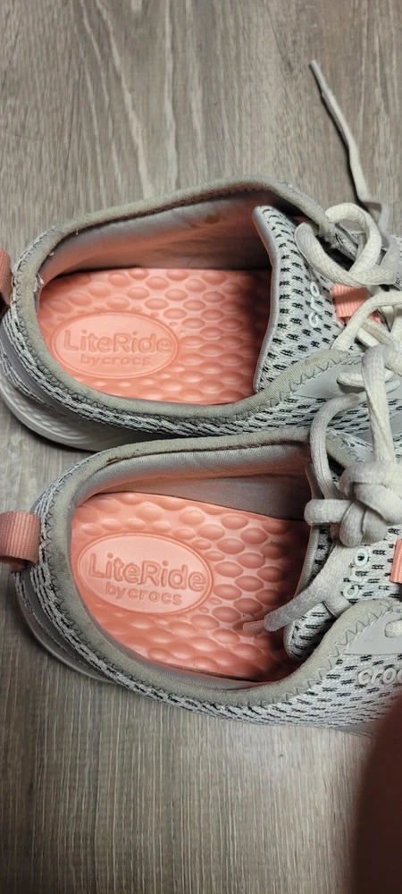 Introducing the LiteRide By Crocs Sneaker in Gray Peach, perfect for women who love casual style. This pair is designed with synthetic upper material and a comfortable sneaker-style, perfect for any outdoor activity. The shoes are available in US Shoe Size 7 with a wide shoe width, ensuring a perfect fit. The shoes are made by Crocs, a renowned brand for its comfortable and stylish footwear. The LiteRide By Crocs Sneaker is perfect for women who prefer comfort shoes that are both fashionable and functional. This pair is made in Vietnam and is a must-have for any woman's shoe collection. Buy now and enjoy the comfort and style of the LiteRide By Crocs Sneaker.