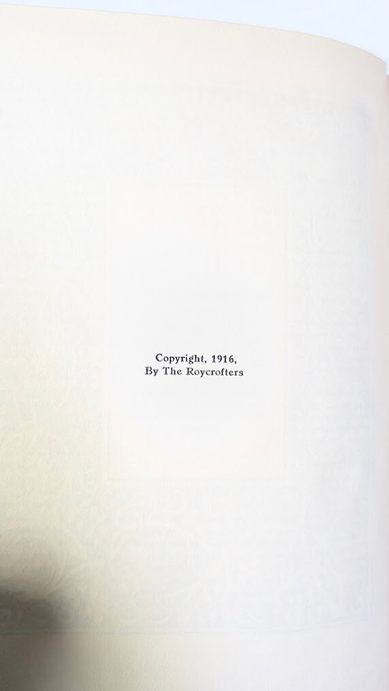 Complete set of 14 little journeys PLUS the guidebook and two notebooks. All leather-bound books come in their original dust jackets and feature gilded, deckle-edged paper. Memorial edition prepared for "Ruth M Wicklein" as seen on the first page of the first volume. Printed in 1916. The accompanying guidebook was printed in 1926. Kept in a climate-controlled room, smoke free home.