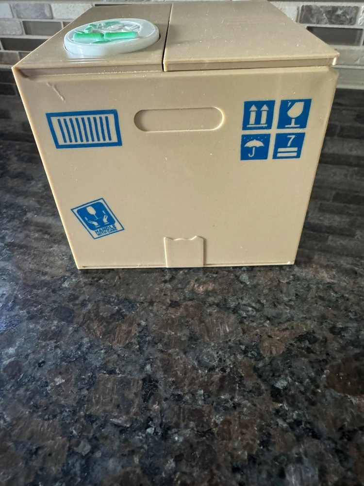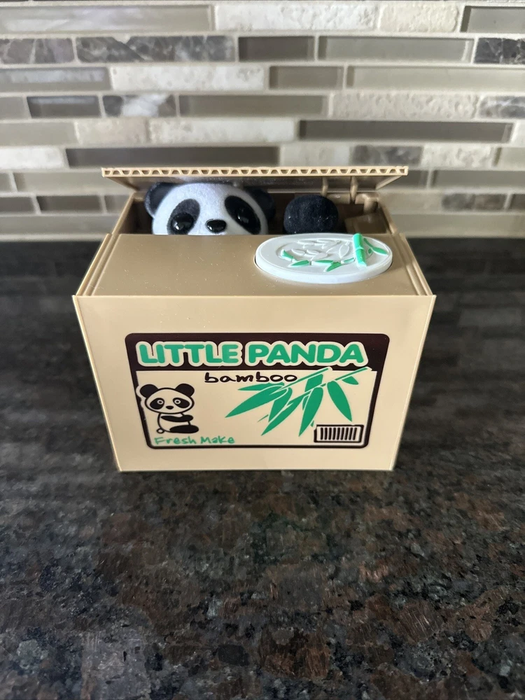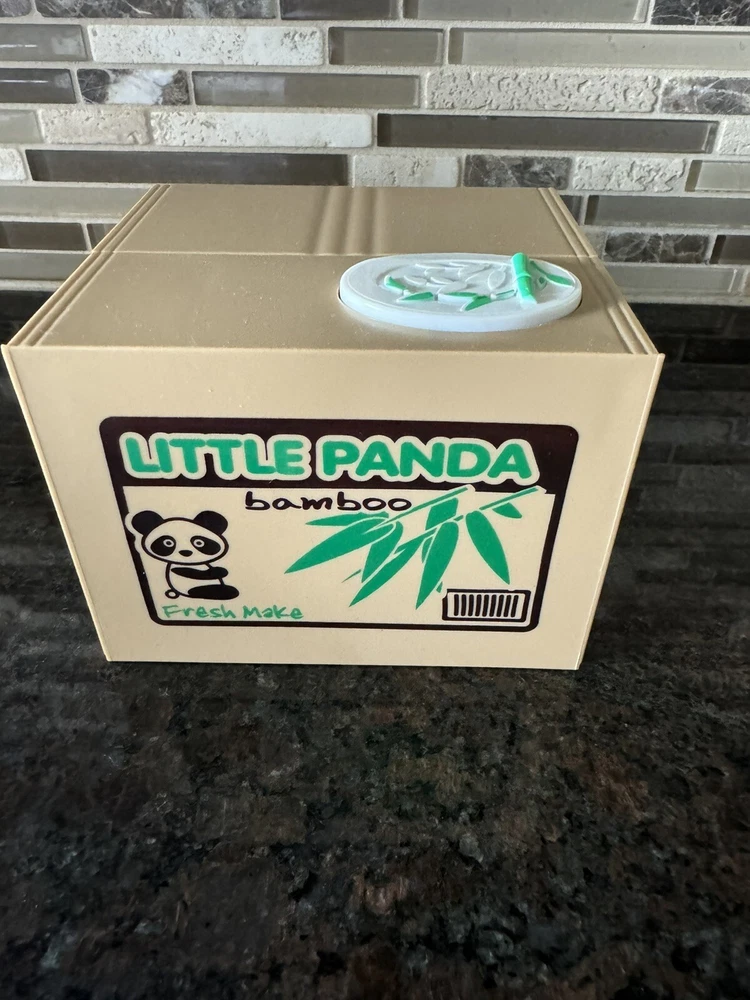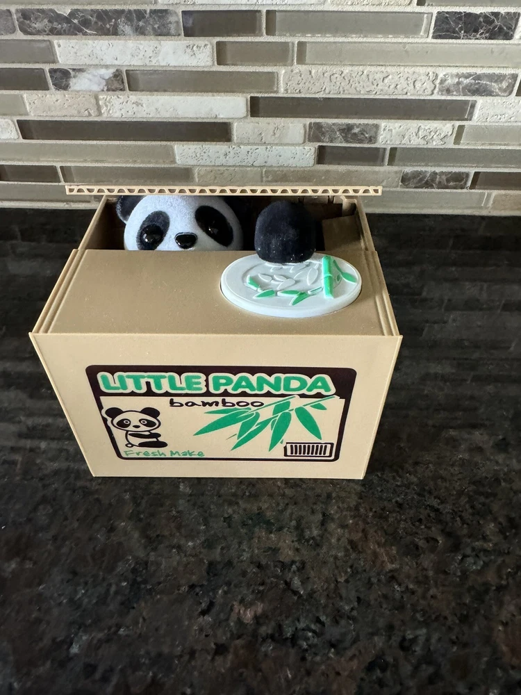 Super cute. Put a coin on the leaves he pops his head out of the box and his little paw grabs the coin and says what the heck? ( I think )