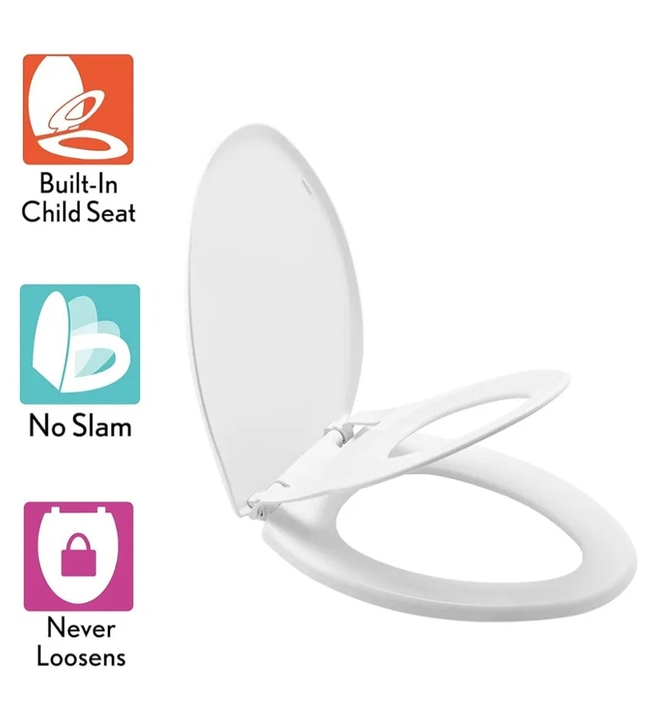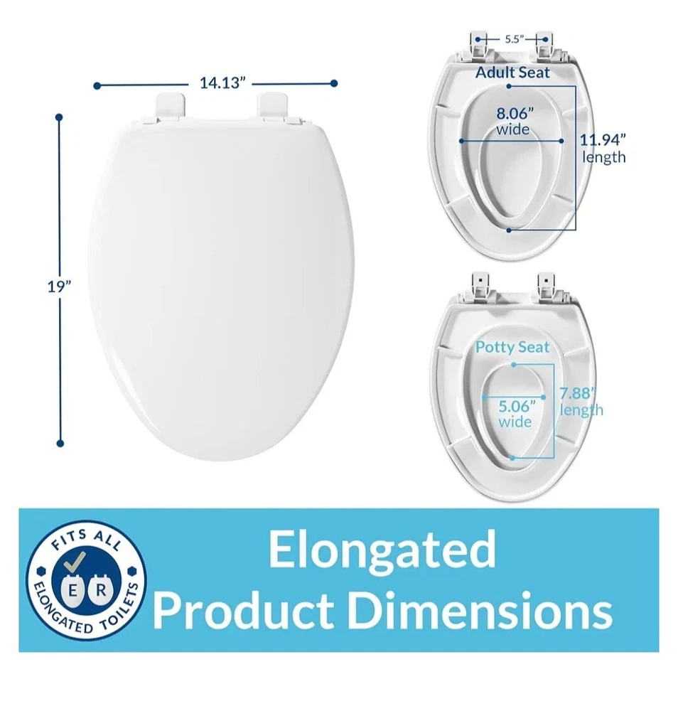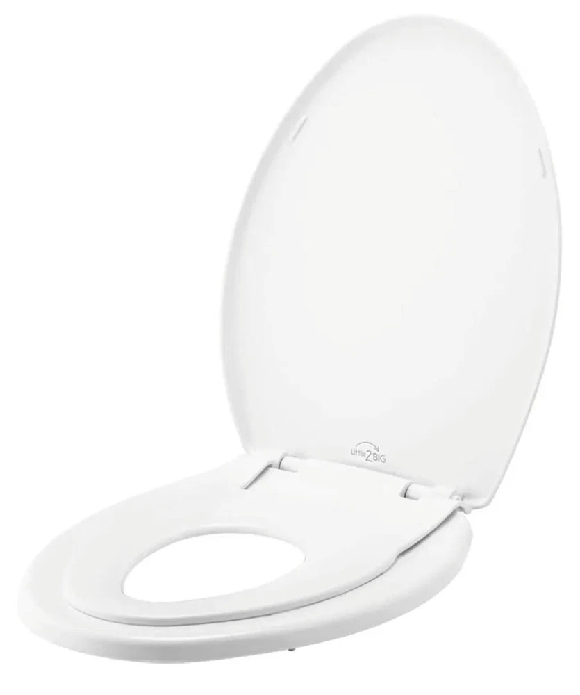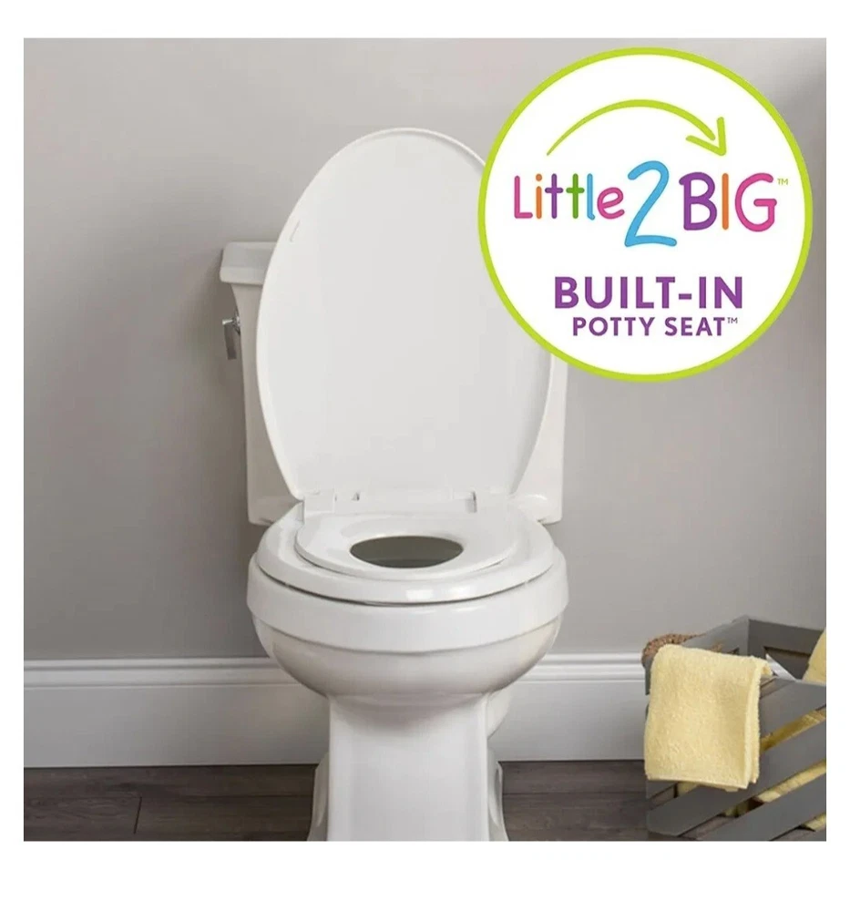 The Little2Big Toilet Seat with Built-In Potty is designed for both adults and children, featuring an elongated shape and white color. Made of plastic, this Mayfair toilet seat includes fittings and a soft-close mechanism for gentle closing. It also has a child seat/double lid feature, making it convenient for families with young children. This toilet seat is compatible with various brands and models such as TOTO, Kohler, American Standard, and AquaSource, offering versatility in installation. Ideal for the bathroom, this seat provides comfort and functionality for users of all ages.