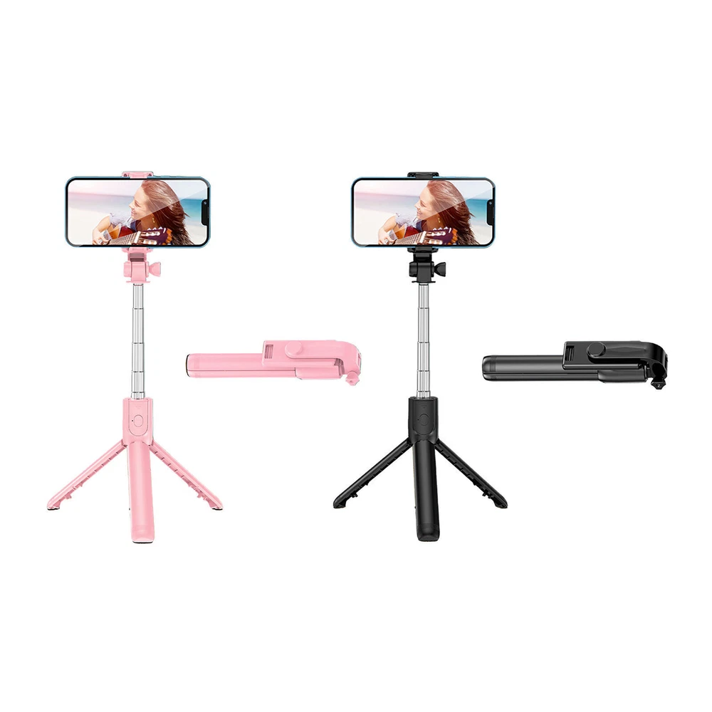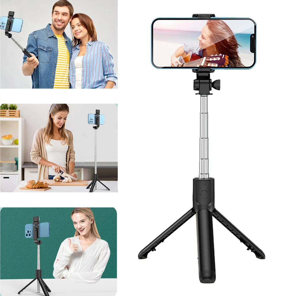 Feature: 1. Rotating Base: With its 360 degree rotating base, you can take incredible photos in vertical and horizontal directions, and you can catch the best moments with your family or travel from any angle. 2. Telescopic: This selfie stick has retractable crutches and 3 deployable legs, which can be used as a tripod on any plane. 3. Foldable: You can take it anywhere you want because of its foldable portability, with your selfie stick, you can take pictures anywhere, thanks to its affordable size, you can keep it in a bag or backpack so that you can accompany you on the journey. 4. Remote Control: In order to take pictures at a place of up to 10 meters, this self portrait stick has a removable camera button connected to the phone BT, which is convenient for taking pictures. 5. Battery Powered: You do not need to charge, because it comes from the 3V button battery, which is convenient and durable for battery powered. Specification: Item Type: Tripod Selfie Stick Material: Stainless Steel, ABS Gross Weight: 130g / 4.6oz Product Size: Approx.18.5 x 4.5 x 3.8cm / 7.3 x 1.8 x 1.5in Stretching Length: Approx.70cm / 27.6in Shrinkage Length: Approx.18.5cm / 7.3in Battery: 3V CR1632 button battery for remote control BT Distance: 10m Package List: 1 x Selfie Stick 1 x Remote Control Note: Fill light is not included.