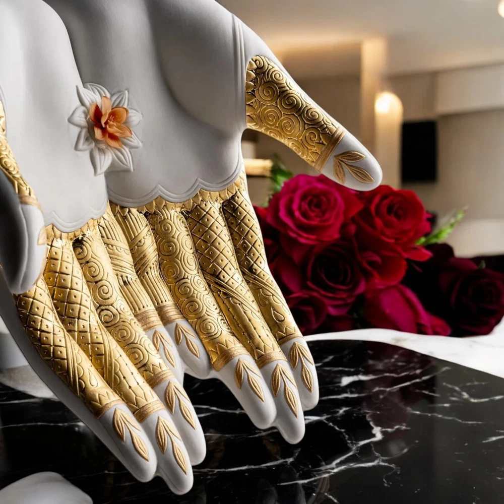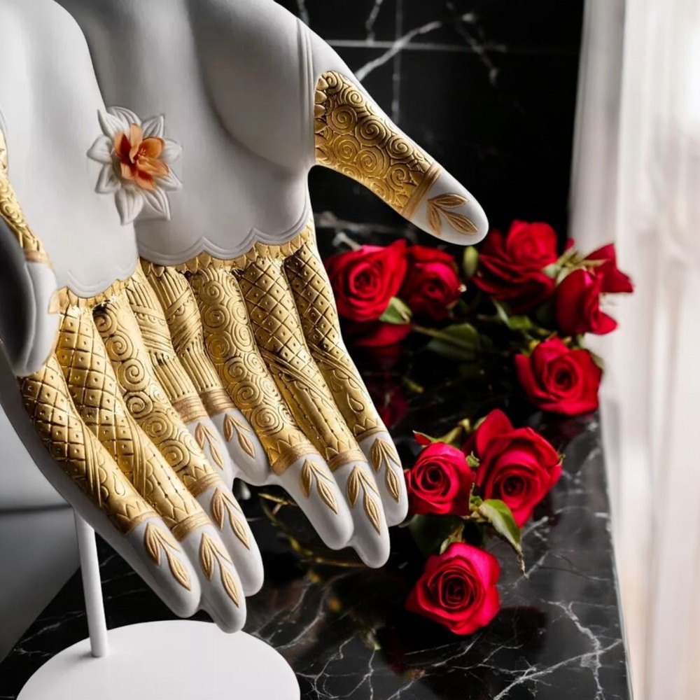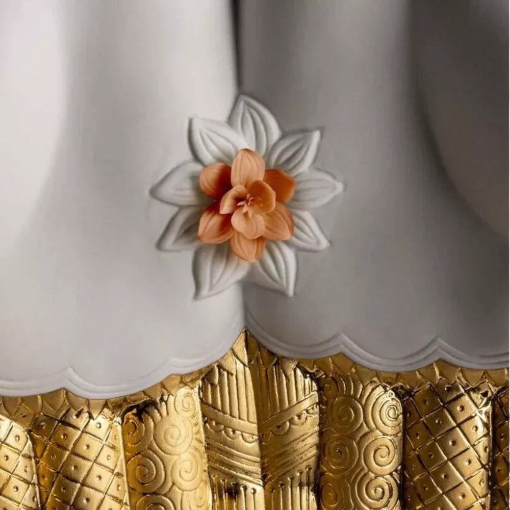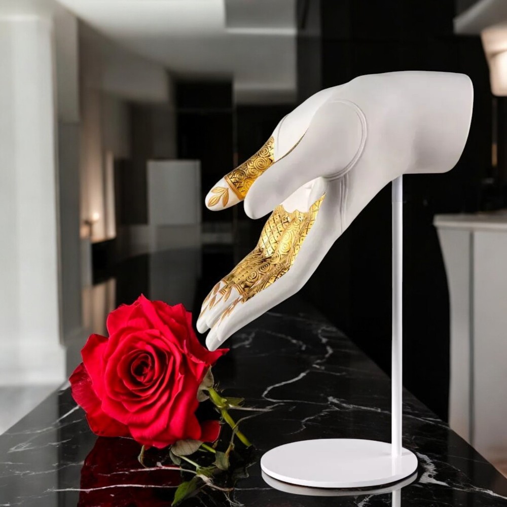 Lladro 01009753 Abundance Mudra Sculpture #9753 Lladro 01009753 Abundance Mudra Sculpture #9753 Lladro Abundance Mudra Sculpture | Symbol of Prosperity and Elegance Celebrate Life’s Wealth with Timeless Artistry The Abundance Mudra sculpture by Lladró embodies the sacred gesture of abundance, inspired by ancient yoga and meditation practices in Hinduism and Buddhism. This stunning porcelain masterpiece represents life’s prosperity and serves as a profound reminder of gratitude for the blessings we receive. Crafted with precision and care, this piece showcases: Intricate Geometric Patterns & Plant Motifs: Beautifully etched onto the porcelain hand. Delicate Flower Base: Sculpted with handmade petals, adorned in harmonious tones of yellow, pink, and gold. Gold Luster Finishes: A mix of matte and glazed finishes adds a luxurious touch to its design. The hand, resting gracefully on the sculpted flower, exudes both spiritual depth and artistic brilliance, making it a perfect addition to your home or office. Product Details: SKU: 01009753 Weight: 5.07 lb (2.3 kg) Finish: Matte and gold luster Dimensions: Height: 12.6 in (32 cm) Width: 9.1 in (23 cm) Length: 9.4 in (24 cm) Sculptor: Virginia González Shipping: Includes insurance for safe delivery. A Perfect Blend of Spirituality and Art Whether you’re a collector or seeking a meaningful decorative piece, the Abundance Mudra sculpture brings a unique blend of spirituality, culture, and elegance to any space. Want More? Explore our curated collection of luxury porcelain art at our eBay store: Treskor . Celebrate prosperity and gratitude with this extraordinary Lladró creation—order today and make it yours! Returns Policy We offer a 14-day return policy for your peace of mind. If you’re not satisfied with your purchase, you may return the item at your own cost, provided it’s in its original condition with all packaging intact. Please ensure the return shipment is fully insured to cover any potential damage during transit. Damaged Items In the rare event of damage upon delivery, please: Retain all packaging and boxes. Provide photos of the damaged item and packaging to help us process insurance and shipping claims. Contact us within 24 hours of receipt to arrange for a refund or replacement, subject to availability. Import Duties Import duties or taxes, if applicable, are the buyer’s responsibility. These fees are determined by your local customs office, and we recommend consulting them for specific charges. TRE SKOR does not collect or control these fees. Non-Claimed Products If a shipment is unclaimed due to refusal to pay customs duties or delays in providing required documents, resulting in its return, TRE SKOR reserves the right to charge the customer for both the initial shipping and any return fees incurred. This applies to orders shipped with FREE SHIPPING . Notification Process We will make reasonable attempts to notify you via the email associated with your eBay account before applying any charges. Acknowledgment By purchasing from TRE SKOR, you agree to abide by our Shipping, Returns, and Non-Claim Policy . For any questions or assistance, please don’t hesitate to contact our customer service team. Explore more treasures in our store here: Visit TRE SKOR on eBay Thank you for choosing TRE SKOR—we look forward to serving you!