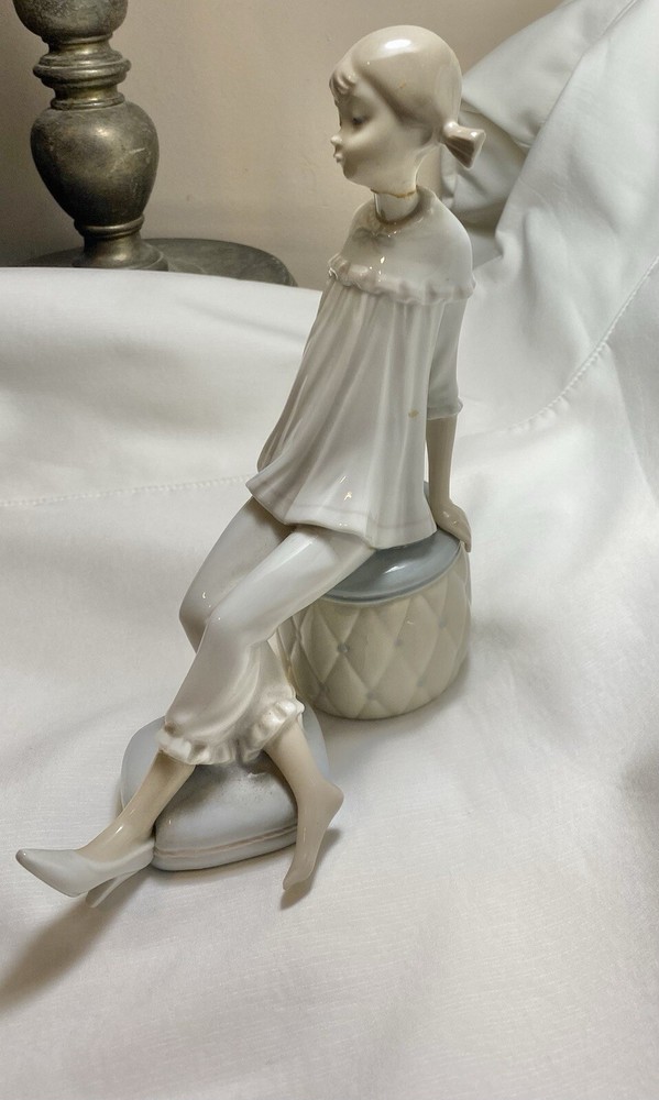 This Lladró figurine is a wonderful addition to any collection. Depicting a girl sitting on a stool, it is made of high-quality ceramic and stands at a medium height. The intricate details and beautiful design make it a must-have for figurine enthusiasts. Perfect for those who love to collect decorative items, this Lladró figurine is a great buy now.
