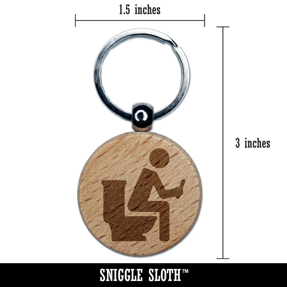 Llavero de madera grabado para caca de baño persona sentada en el inodoro con teléfono