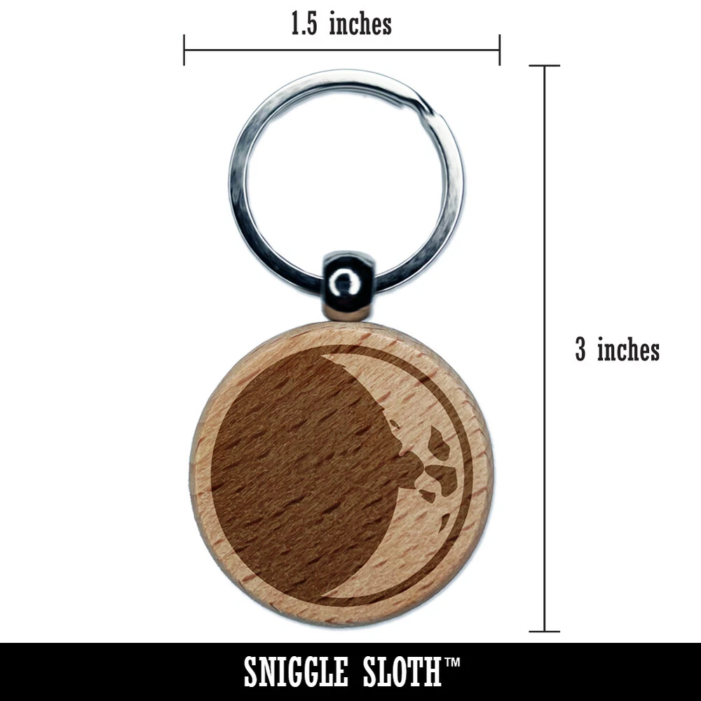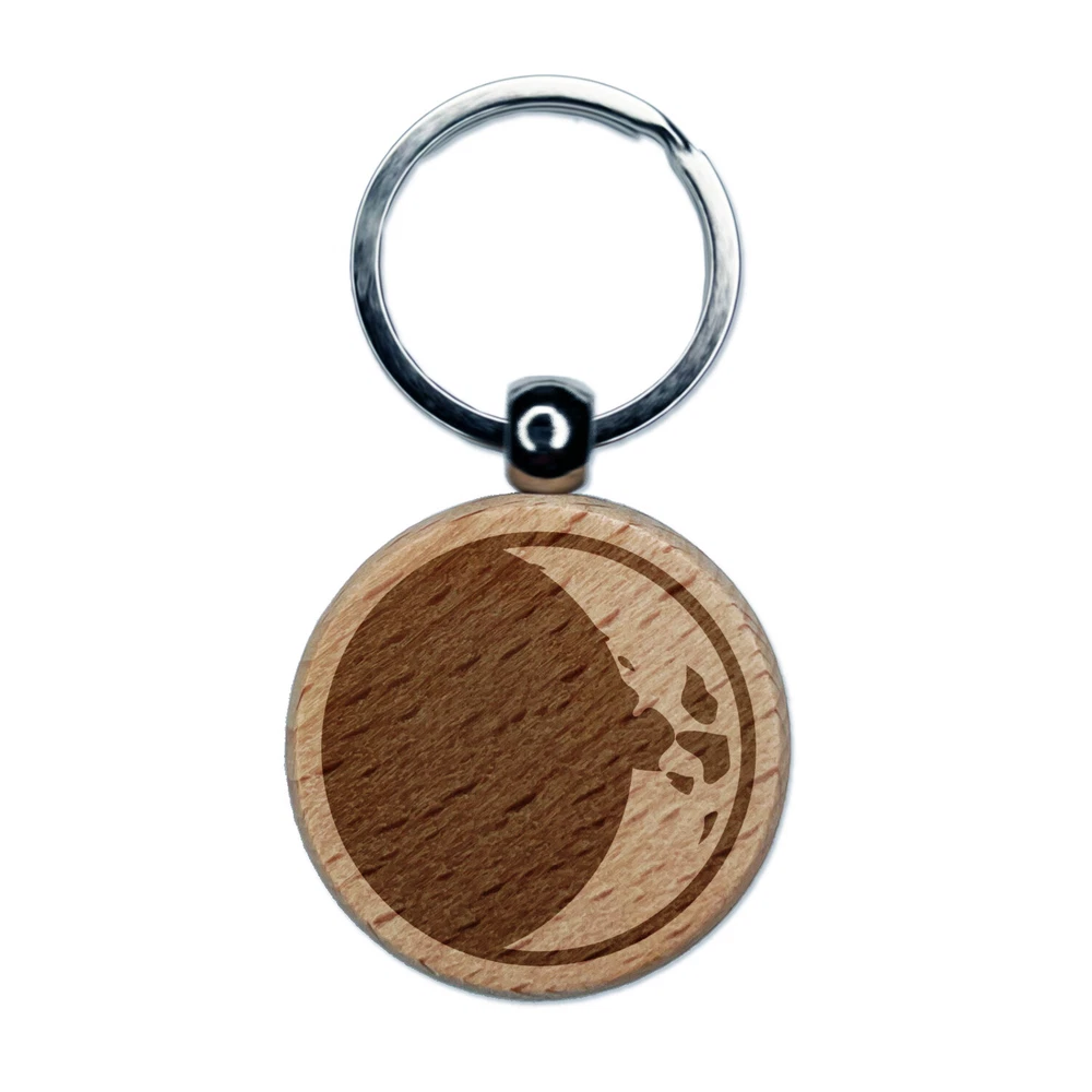 Llavero redondo en fase lunar de cera grabado en madera con etiqueta