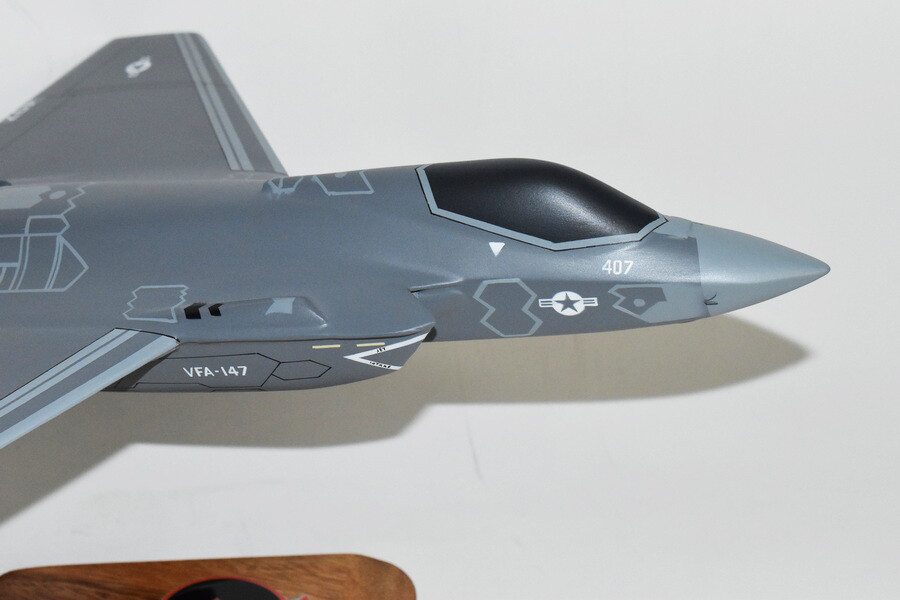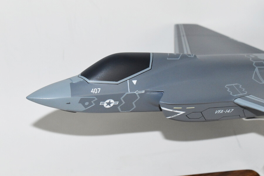 Lockheed Martin® F-35C Lightning II®, VFA-147 Argonauts Fly with the VFA-147 Argonauts in this handcrafted Lockheed Martin F-35C Lightning II model. You'll proudly be able to display this carefully crafted wooden model. Length - 18 inches Made from Mahogany US Veteran-Owned Business Officially Licensed By Lockheed Martin The manufacturer does not intend for children 12 years and younger to use the product LOCKHEED MARTIN®, F-35 LIGHTNING II®, associated emblems and logos, and body designs of vehicles are either registered trademarks or trademarks of Lockheed Martin Corporation in the USA and/or other jurisdictions, used under license by Squadron Nostalgia LLC The F-35C Lightning II is a modern fighter jet designed for the U.S. Navy. First, its development began in the early 2000s. The goal was to create an advanced aircraft with stealth capabilities. As a result, the F-35C offers superior technology for aerial combat and naval operations. Moreover, this fighter jet features larger wings and enhanced landing gear. These modifications enable it to handle carrier landings. Consequently, the F-35C can operate effectively from aircraft carriers, which enhances its versatility. The design also emphasizes improved range and payload capacity. In 2010, the F-35C made its first flight. Subsequently, pilots conducted numerous tests to ensure its performance. Through these tests, they evaluated its capabilities in various conditions. Thus, the aircraft demonstrated reliability and effectiveness, making it ready for future missions. Furthermore, the F-35C is equipped with advanced avionics. These systems provide pilots with crucial information during missions. As a result, the aircraft can engage enemy threats with accuracy. Additionally, the advanced technology plays a vital role in joint operations. In recent years, the F-35C Argonauts squadron formed as part of the U.S. Navy. This squadron focuses on integrating the F-35C into naval operations. Through training and exercises, they improve skills and build teamwork. Thus, the squadron enhances the Navy's overall effectiveness. Besides, the Argonauts participate in various exercises and missions. These activities demonstrate the F-35C's capabilities in real-world scenarios. Moreover, the squadron's performance showcases the value of modern warfare technology. As a result, they maintain high readiness levels for any challenge. In conclusion, the F-35C Lightning II represents a leap forward in naval aviation. With advancements in technology and design, it enhances U.S. military strength. The Argonauts play a crucial role in this evolution. Thus, they ensure that the Navy is prepared for future conflicts.