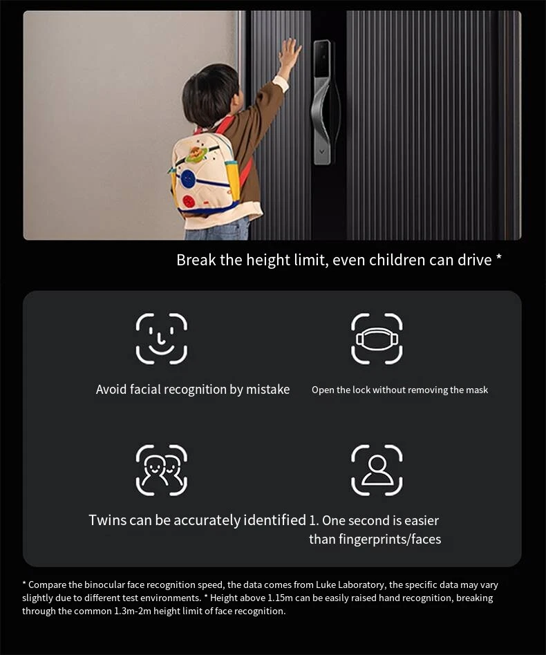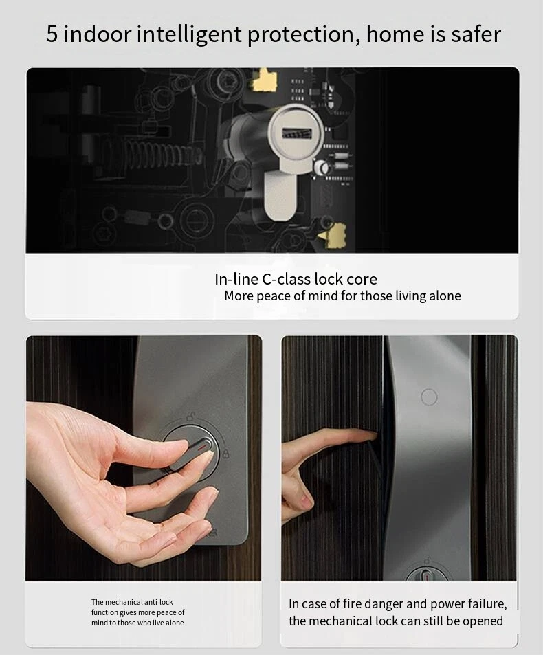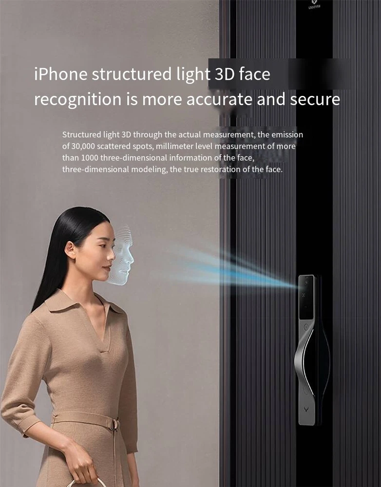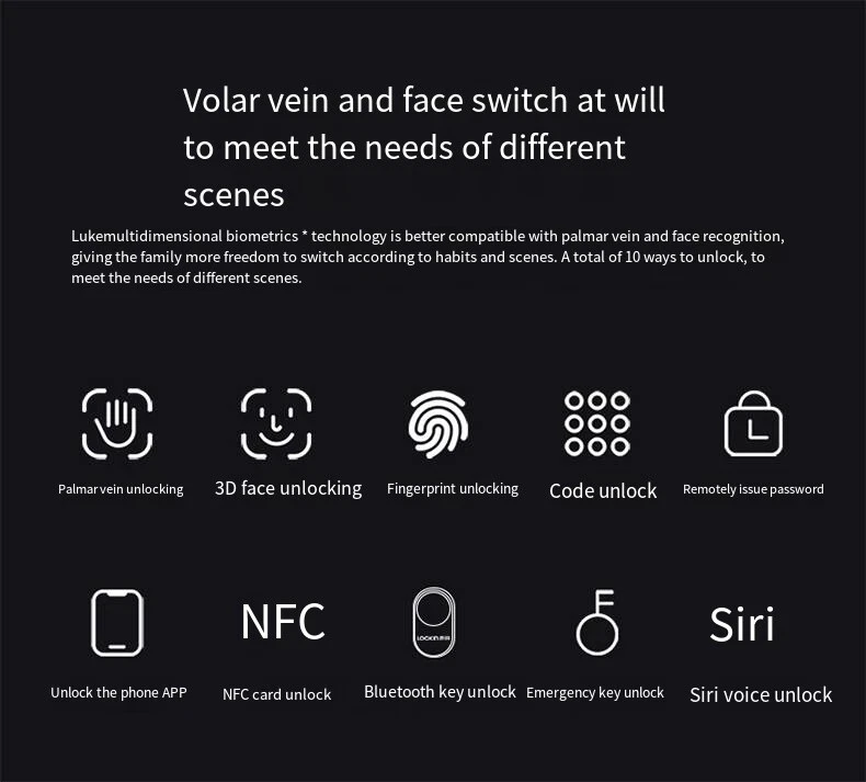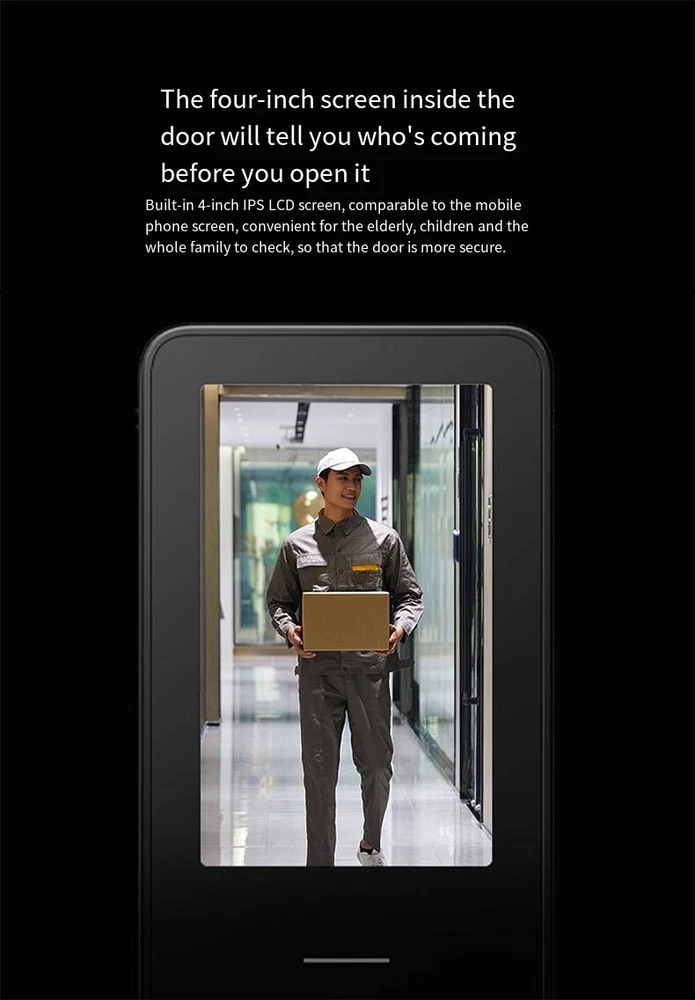 Product details Product details: lockin V5 Max Palm Vein Biometric Recognition SPECIFICATIONSUnlock Method: Palm Vein, Face, Fingerprint, Password,Bluetooth key, Phone Bluetooth, Homekit, NFC card,One-time password, Mechanical key Panel Dimension:L459.8W78*H16mm Display: 4 Inch 800*480 resolution Panel Material: Aluminum Alloy Lock TongueMaterial: Stainless steel APP:MIHome APP,HomeKit APP Cylinder Class: Class C PIN Code Length: 6-10 digits, max 20 digits decoy PINcode supported Emergency Power Supply:Type-C Operating Ambient Temperature: -20-55CSuitable Door: Wooden door, security door Door Thickness:40-120mm PalmVein Group:Max 50 Facelnformation Group: Max 50 PIN Code Group:Max 50 NFC:Max 25 Bluetooth Key Group: Max 25 Battery: one 5000mAh lithium battery and one2250mAh ( Batteries are not included in the package ) Please note: the door lock has a distinction between the left door and the right door, please confirm before you purchase, or you can leave a message to us Products Description Lockin Smart Lock Automation APP Remote Visual Cat Eye Monitoring 3D Face Recognition Wifi Fingerprint Electronic Home Door Lock V5 Max Palm Vein Biometric Recognition SPECIFICATIONSUnlock Method: Palm Vein, Face, Fingerprint, Password,Bluetooth key, Phone Bluetooth, Homekit, NFC card,One-time password, Mechanical key Panel Dimension:L459.8W78*H16mm Display: 4 Inch 800*480 resolution Panel Material: Aluminum Alloy Lock TongueMaterial: Stainless steel APP:MIHome APP,HomeKit APP Cylinder Class: Class C PIN Code Length: 6-10 digits, max 20 digits decoy PINcode supported Emergency Power Supply:Type-C Operating Ambient Temperature: -20-55CSuitable Door: Wooden door, security door Door Thickness:40-120mm PalmVein Group:Max 50 Facelnformation Group: Max 50 PIN Code Group:Max 50 NFC:Max 25 Bluetooth Key Group: Max 25 Battery: one 5000mAh lithium battery and one2250mAh ( Batteries are included in the package ) Please note: the door lock has a distinction between the left door and the right door, please confirm before you purchase, or you can leave a message to us Introducing the V5 Max Smart Lock with an array of advanced features, including 3D face recognition, palm vein biometric recognition, and remote visual cat-eye monitoring, all accessible through a user-friendly mobile app. This high-tech electronic home door lock combines cutting-edge technology with top-notch security for a truly modern and convenient access solution. Here's a comprehensive description of the V5 Max Smart Lock: Advanced Biometric Security: The V5 Max Smart Lock offers a multi-layered biometric security system that includes palm vein recognition, 3D face recognition, and fingerprint scanning. These sophisticated methods provide highly accurate and secure means of unlocking the door, ensuring your home's safety. Remote Visual Cat-Eye Monitoring: This innovative smart lock comes equipped with a visual cat-eye monitoring feature, enabling you to see and verify visitors remotely through the mobile app. The integrated camera provides real-time visuals, enhancing your control over who gains access to your home. Versatile Unlocking Methods: Unlock your door using a variety of methods, including palm vein recognition, facial recognition, fingerprint scanning, password input, Bluetooth key, phone Bluetooth, HomeKit, NFC card, one-time password, or even a traditional mechanical key, ensuring flexibility and convenience. High-Resolution Display: The V5 Max Smart Lock features a 4-inch high-resolution display with an 800x480 resolution, offering a clear and user-friendly interface for easy access and programming. Premium Build Quality: Crafted from durable materials, the lock panel is constructed from sleek and sturdy aluminum alloy, while the lock tongue is made of stainless steel, ensuring both functionality and aesthetic appeal. Comprehensive Compatibility: This smart lock is compatible with various apps, including MIHome and HomeKit, offering seamless integration into your home automation system. Advanced PIN Code Security: Create PIN codes with a length of 6 to 10 digits, and take advantage of a maximum 20 digits decoy PIN code for added security. Emergency Power Supply: Featuring a Type-C emergency power supply, you won't have to worry about being locked out in case of a power outage. Wide Temperature Range: This smart lock operates efficiently within a broad temperature range, from -20°C to 55°C, ensuring reliable performance in various climates. Door Compatibility: Suitable for wooden doors and security doors with a thickness ranging from 40mm to 120mm. User-Friendly Group Management: Manage different user groups with ease, including Palm Vein Group (up to 50), Face Information Group (up to 50), PIN Code Group (up to 50), NFC (up to 25), and Bluetooth Key Group (up to 25). Long-Lasting Battery: The V5 Max Smart Lock is powered by one 5000mAh lithium battery and one 2250mAh lithium battery, both included in the package, ensuring extended usage without frequent recharging. Left and Right Door Compatibility: Please note that the door lock has a distinction between left and right doors, so make sure to confirm your door type before purchasing. If you have any questions, feel free to contact our customer support for assistance. In summary, the V5 Max Smart Lock is an epitome of modern security and convenience, combining state-of-the-art biometric recognition with remote monitoring capabilities. With its versatile unlocking options and compatibility with various home automation platforms, it's an ideal choice for safeguarding your home and enhancing your daily life. #lock #face # Usmrat Go #3D #Face #Recognition #Vein #Fingerprint #Digital #Electronic #Door #Lock #Smart #Door #Lock #with #Camera #Biometric #Unlock #Biometric #Biometric #Biometric #Biometric #Biometric #Biometric #Biometric #Biometric #Biometric #Biometric #Biometric #Biometric #Biometric #Biometric #3D #Face #Recognition #Vein #Fingerprint #Digital #Electronic #Door #Lock #S