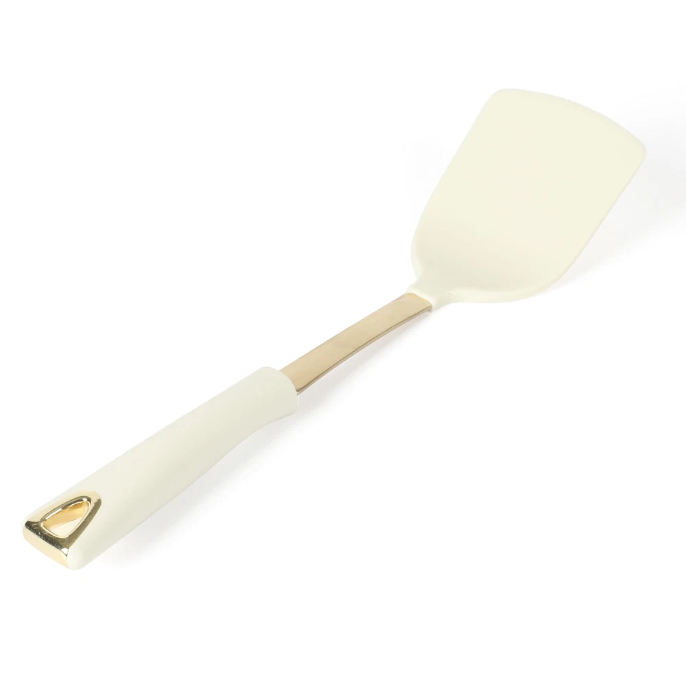 Following the lead of Martha's best-selling Lockton Cookware collection, this 5-piece Prep and Serve Kitchen Tool Set from also features the same gold and linen finish for a match made in colorway heaven. Stainless steel construction provides long-lasting use and service, suitable for making everyday meals and seasonal favorites. Gold-toned finish adds a quiet but luxurious look to any culinary space. This set includes nylon tools as well - crafted to help prevent scratches and scraping on nonstick surfaces, enameled interiors and other delicate finishes. Heat-resistant handles offer an ergonomic shape for a comfortable grip. These prep-and-serve utensils answer to every home cook's search for the right set of tools to save time in the kitchen and help serve the best flavors and textures to the table. Hand wash only. Embrace thoughtfully designed home essentials from America’s most trusted lifestyle expert, . Step into her exquisite and iconic world filled with a curation of high-quality products to prep, cook, bake, serve, and enjoy. All crafted to elevate everyday homemaking and seasonal entertaining, these kitchen and tabletop pieces blend style and performance, inspiring avid hosts and home cooks to set stylish tables, serve up delicious meals, and create spectacular memories. A COMPLETE SET INCLUDES: One stainless steel spoon, one stainless steel ladle, one nylon skimmer, one nylon scraper and one nylon solid turner. Following the lead of Martha's best-selling Lockton cookware collection, this kitchen tool set features the same gold and linen finish for a match made in colorway heaven. MADE FROM DURABLE STAINLESS STEEL: Polished stainless steel construction provides durability that lasts long and style that is never lackluster. Gilded finish gives these utensils (and your kitchen!) a deluxe upgrade. Stow them in a ceramic crock for a beautiful display of gold-toned tools on the countertop and easy access when it's time to cook and make something delicious. NONSTICK-FRIENDLY: Nylon utensils are safe to use on nonstick sufaces, enameled interiors and other delicate finishes. HEAT-RESISTANT HANDLES: Ergonomic heat-resistant handles in crisp white linen color provide a comfortable grip. CARE INSTRUCTIONS: Hand wash only.