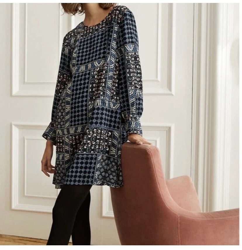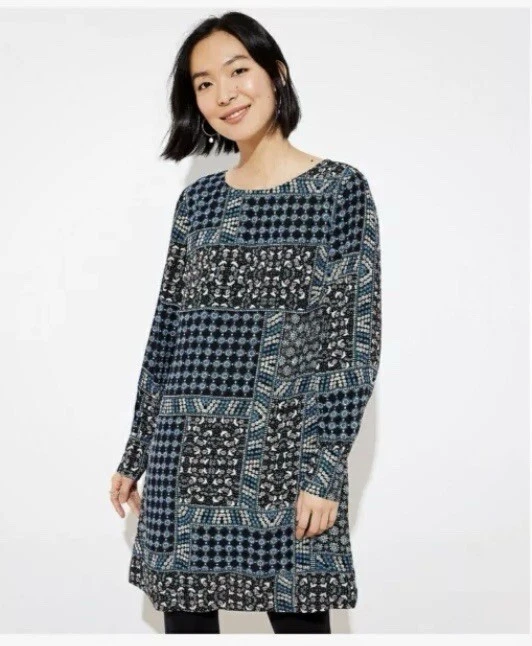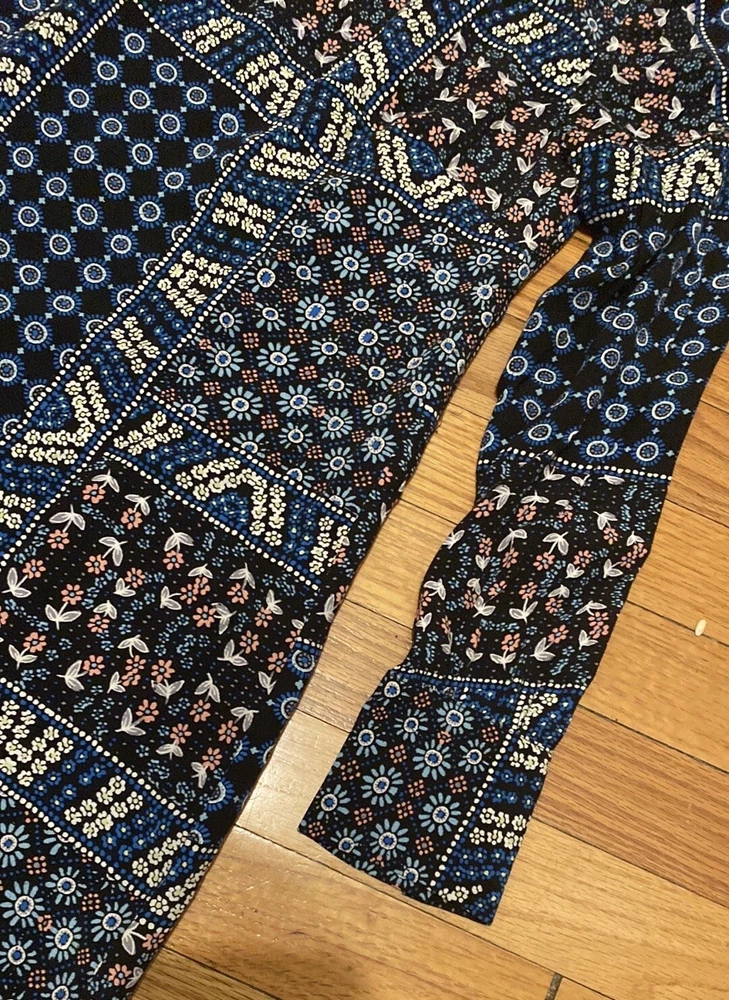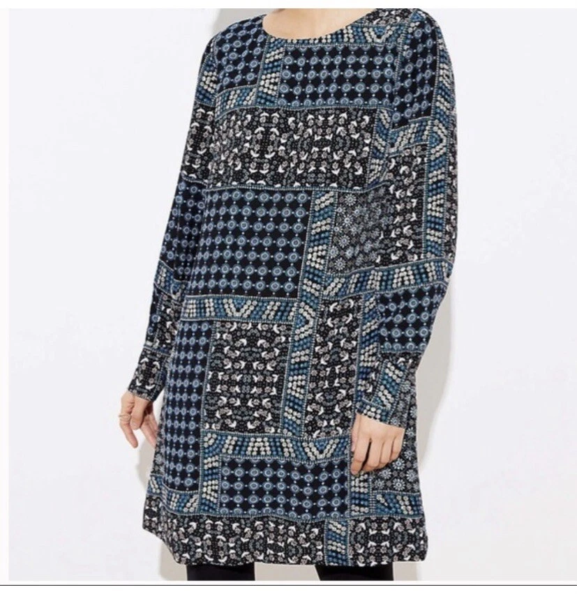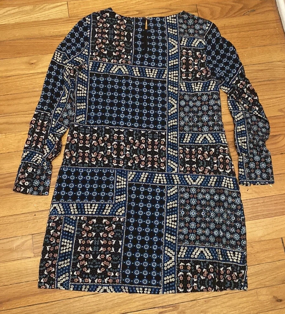 Loft Petites Black Blue Pink Patchwork Ditsy Floral Long Sleeve Dress Sz 2P