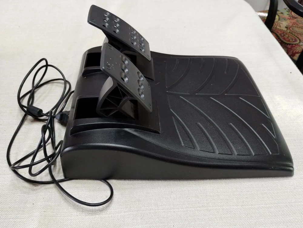 Logitech Driving Force Pro Steering Racing Wheel, and Pedals, with all Cords. Model # E-UJ11, works on pc PS2 and ps3. Works great.