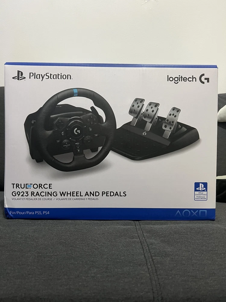 Logitech G923 Racing Wheel and Pedals for PS5, PS4 and PC Logitech G923 Racing Wheel and Pedals for PS5, PS4 and PC Features TRUEFORCE: Unleash your passion for racing with high-definition force feedback. TRUEFORCE connects directly to game engines, processing at 4000 times a second to produce next-gen realism and detail in supported games Programmable dual clutch: Get off the starting line faster with maximum traction and minimum smoke in supported games Control the race: 24-point selector, RPM LEDs, integrated PS4 or PC game controls, and progressive brake spring all help you maintain control of your vehicle at high speeds in supported games Crafted with Premium Materials: refreshed Logitech G design with brushed metal wheel, hand-stitched leather wheel cover, and polished metal pedals Total Wheel Control: Control wheel sensitivity, force feedback levels, and button customization via powerful G HUB Gaming Software for PC. Download at logitechG /downloads Compatible with most racing games on PS5 and PS4 with select titles specially designed for TRUEFORCE. Fast and Free Shipping You're already purchasing the item. Why pay additional for shipping, especially slow shipping? We get your order shipped out within 1-business day and delivered to your doorstep as quickly as possible. Competitive Pricing With our dynamic pricing model, our prices are always competitive. Our prices are some of the lowest that you will find on the internet. Rest assured that you're getting a good deal when purchasing with us. 30-day Money Back Guarantee We are committed to making sure that you leave this transaction satisfied. If you're unhappy with the product for any reason, you may return it back for your money-back or a replacement within 30 days. No questions asked!