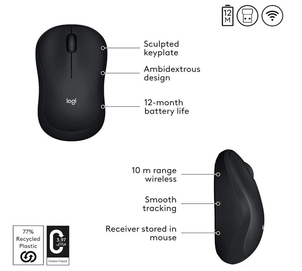 Logitech M185 Compact Wireless Mouse - Black NEW SEALED PKG. Condition is New. Shipped with USPS Ground Advantage.
