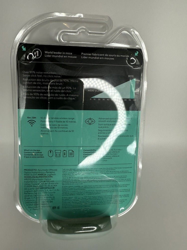 Enjoy quiet, precise, and comfortable navigation with the Logitech M330 Silent Plus Wireless Mouse. Designed to provide a smooth and silent experience, this mouse is perfect for work, study, or casual browsing, offering a more peaceful environment without sacrificing performance. Product Features: • Brand: Logitech • Model: M330 Silent Plus • Color: Black • Wireless Technology: 2.4GHz wireless connectivity for a reliable and secure connection • DPI: 1000 DPI for smooth and accurate tracking • Silent Click: Silent buttons for noiseless clicking, reducing distractions • Ergonomic Design: Comfortable, contoured shape for extended use without hand fatigue • Long Battery Life: Up to 24 months of battery life with one AA battery (included) • Plug-and-Play: Easy setup with a USB receiver that can be stored inside the mouse for portability • Compatibility: Works with Windows, macOS, and Linux Why You’ll Love It: • Ideal for quiet workspaces or shared environments • Ergonomic design offers comfort for long hours of use • Long battery life means less frequent replacements