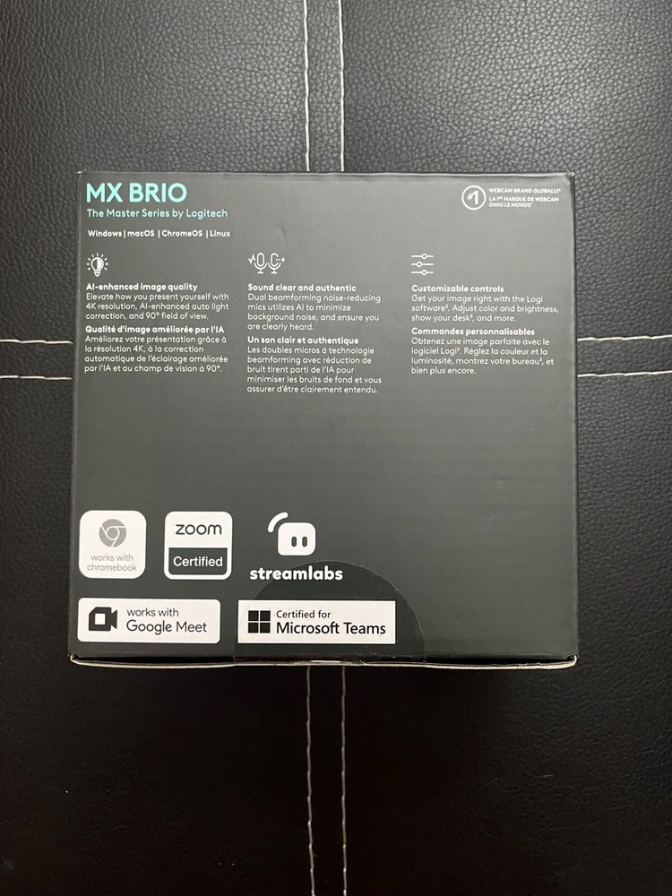 Presenting the Logitech MX Brio Ultra HD 4K Video Conference, Gaming and Streaming Webcam. This high-quality webcam offers stunning video resolution of up to 4K, making it perfect for all your video conferencing needs. With its sleek silver design, this unit is sure to blend seamlessly into any workspace. Featuring a built-in microphone, this webcam allows for clear communication during video conferences and gaming sessions. The Logitech MX Brio is easy to set up and use, with connectivity options including USB 3.0 and USB 2.0. This unit is a great addition to any setup, whether you're looking to enhance your work experience or take your gaming to the next level.