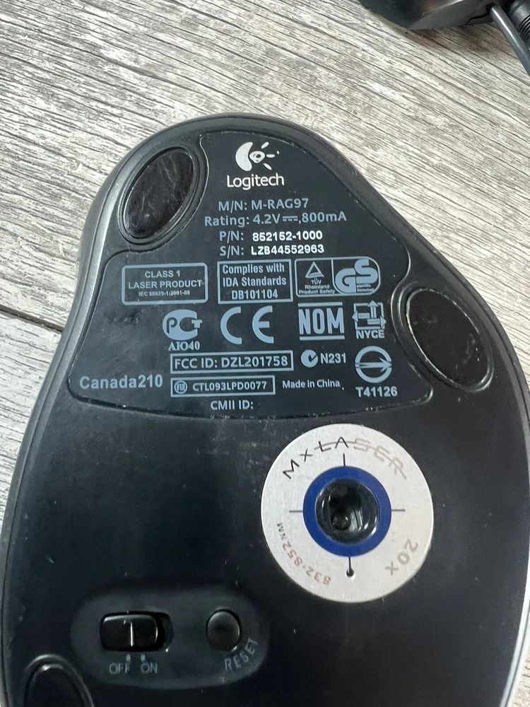 Tracking Method:LaserNumber of Buttons:5Color:Black & GrayCountry/Region of Manufacture:ChinaFeatures:PortableModel:Logitech MX Laser M-RAG97gtin13:Does not applyConnectivity:WirelessBrand:LogitechCustom Bundle:NoUPC:Does not applyType:MouseMPN:M-RAG97Bundle Description:No