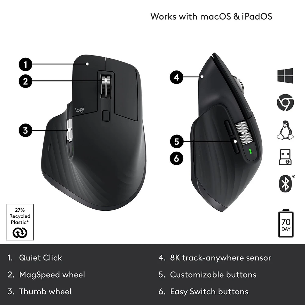 This mouse is a game-changer! The ultra-smooth tracking and silent clicks make it perfect for work or gaming. The ergonomic design keeps my hand comfy even after hours of use, and the battery life lasts forever. The customizable buttons and scroll wheel are super handy—once you try it, you won’t want to go back to anything else!