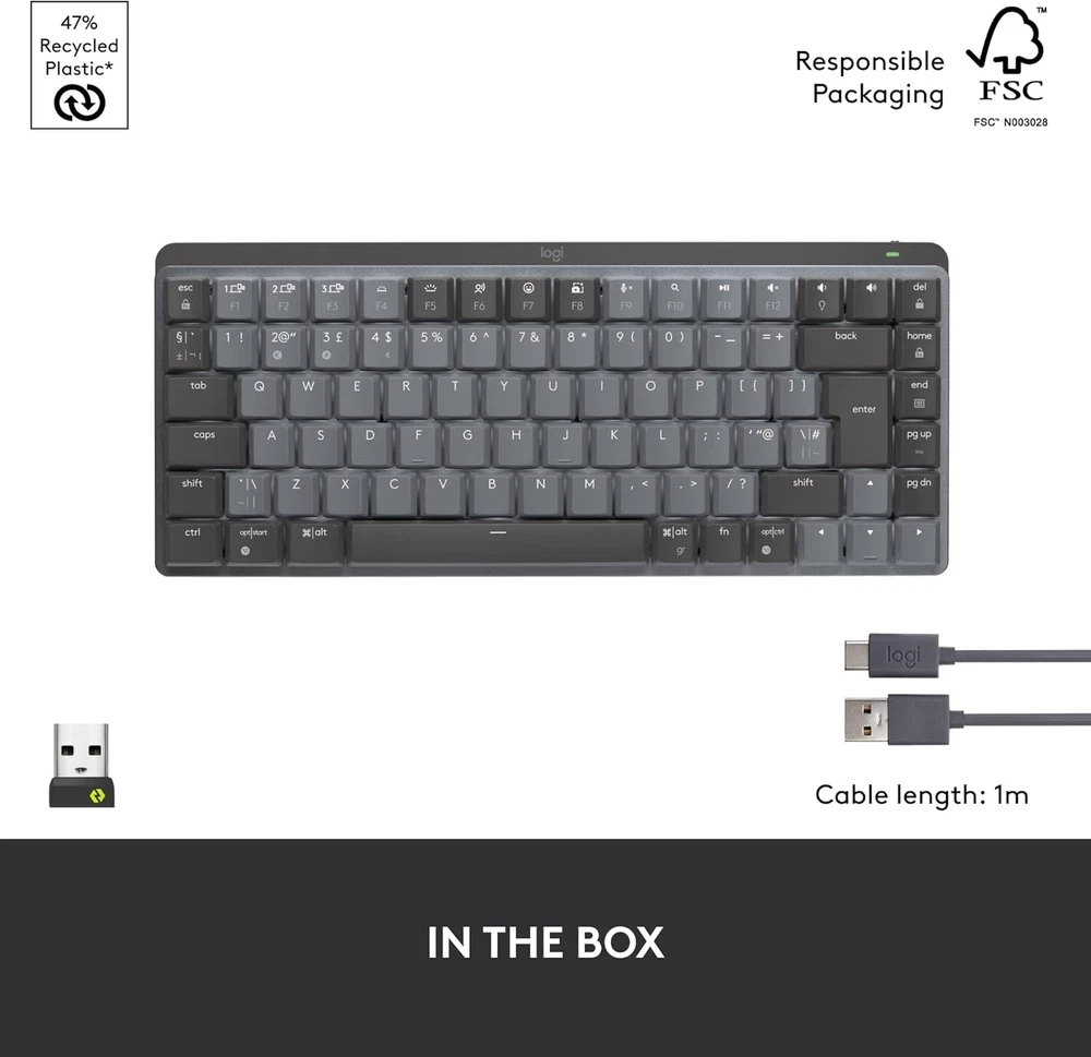 ::: Logitech ::: ITEM DESCRIPTION Logitech MX Mechanical Mini Minimalist Wireless Illuminated Keyboard-GRAPHITE - US - Refurbished • Fluid and quiet mechanical typing: MX Mechanical Mini keyboard features Tactile Quiet switches that deliver next-level feel and flow with less noise - Clicky and Linear switches are also available. • Low-profile keys, more comfort: A keyboard layout designed for effortless precision, with a small, compact form factor and low-profile mechanical switches for better ergonomics. • Smart illumination: Backlit keys light up the moment your hands approach the cordless keyboard and automatically adjust to suit changing lighting conditions. • Faster workflow, more customisation: Customise Fn keys, assign backlighting effects, enable Flow cross-computer, multi-device control, and more in the improved Logi Options+. • Multi-device, multi-OS: Pair MX Mechanical Mini Bluetooth wireless keyboard with up to 3 devices on nearly any operating system via Bluetooth Low Energy or included Logi Bolt receiver. • USB-C quick charging: MX Mechanical Mini keyboard stays powered up to 15 days on a full charge or up to 10 months with the backlighting turned off. • MX Mechanical full-size: If you crunch numbers frequently, a full-size keyboard form factor with an integrated numpad is also available BOX CONTENTS Keyboard Logi Bolt receiver USB-C charging cable (USB-A to USB-C) User documentation PLEASE NOTE: This product comes with One (1) year Limited Hardware warranty. Delivery Returns Warranty About Delivery Information All orders are dispatched within 1 working day upon cleared receipt of payment. We use reputable, tracked and insured couriers (normally Royal Mail) to deliver our items, with a transit time of 1-3 working days but this could increase slightly depending on delivery location or if we are in a peak trading period such as Christmas. We currently ship to UK addresses only. For any delivery related queries, please contact our team via the eBay messaging system and we will look to respond to any inbound enquiry within 1 working day of receipt. Returns Information We want you to be satisfied with the quality of the products you purchase from us. If at any time within 60 days of receiving your order, you are not 100% satisfied, you may return it to us for a refund or replacement. Please contact us via the eBay messaging system to arrange your return. Products must be returned in their ORIGINAL box, including device, charger, battery, instructions, and other components where applicable. All returned products must be in the same condition as when they were received. If an item becomes faulty after 60 days it qualifies for a warranty claim up to 1 year from receiving your order. In order to arrange a warranty return, please contact us via the eBay messaging system and we will provide further instructions. Once your returned item has been received and checked, either a refund will be initiated via eBay or alternatively a replacement item can be arranged. In all cases of returns, please contact us via the eBay messaging system first. We will look to respond to any inbound inquiry within 1 working day of receipt. Warranty Information All items sold through our Official Outlet carry a 1 year manufacturer’s warranty. In the case of a warranty query, please contact us via the eBay messaging system and we will look to respond to any inbound enquiry within 1 working day of receipt. About us Welcome to the official Logitech eBay UK outlet where you can find a wide range of our award-winning branded products in both new and certified refurbished conditions. All items offered are from the manufacturer direct and are covered by our standard UK warranty policy. We are the only authorized seller on eBay UK for Logitech, Logitech G, Ultimate Ears, Blue Microphones, Astro, and Jaybird. Therefore rest assured when shopping with us that you are buying a genuine and authentic product that will be expertly shipped to you directly from our UK warehouse using reputable couriers. Our UK customer service team is also on hand should you ever have an issue or question, your peace of mind when buying from us is our number one priority. Thank you for shopping with us and welcome to the wonderful and innovative world of Logitech!
