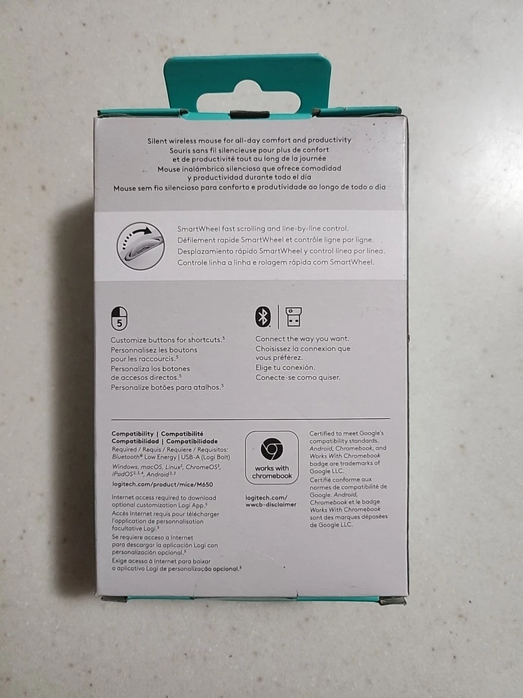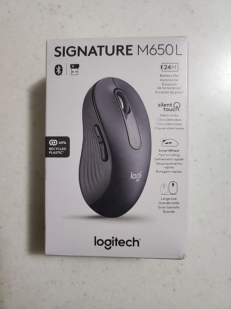 The Logitech Signature M650 is a full-size wireless mouse that promises silent clicking and smooth scrolling. It features five buttons and an adjustable DPI of up to 4000. The mouse is designed for optical tracking and has an on/off switch for added convenience. It connects via Bluetooth and is available in black.