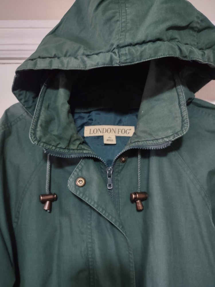 This London Fog jacket for women is the perfect addition to your wardrobe. Made with softshell fabric and lined with polyester, it is comfortable and durable. The mid-length coat features a zip closure and solid green color, making it a great choice for casual occasions. The jacket has pockets and is designed with a zipper accent, adding a touch of style to your outfit. This vintage piece is available in a petite size and is suitable for all seasons, including winter, summer, fall, and spring. Whether you're going out for a walk or running errands, this jacket will keep you warm and fashionable.