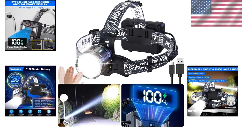 Long Beam Waterproof Headlamp - 1500m Range, Power Bank & 4 Modes Functionality ‹ › ‹ › ‹ › ‹ › ‹ › ‹ › ‹ › ‹ › ‹ › ‹ › Long Beam Waterproof Headlamp Unleash the power of advanced illumination with our exceptional Long Beam Waterproof Headlamp, designed for the adventurous spirit in you. Key Features: Super Bright Long Beam: Experience brilliance like never before with an incredible illumination range of up to 1500ft, thanks to the high-powered 20,000 lumen output and optical-grade double-convex lens. Rechargeable & Power Digital Display: Easily recharge via the USB Type C port in just 4 hours. Plus, utilize the headlamp as an emergency power bank to charge your phone or other devices. Long Runtime: Benefit from an impressive runtime of up to 20 hours in low mode, empowering your outdoor adventures without worry. 4+2 Light Modes & Motion Sensor: Customize your experience with multiple modes - high, low, strobe, SOS, and dual backlight modes. Control your lighting effortlessly with a simple wave of your hand when you activate the motion sensor feature. Zoomable & Adjustable: Easily adjust the headlamp's angle by 90° and zoom for spotlight or floodlight functionality, catering to all your lighting needs during camping, hiking, or emergency situations. IPX6 Waterproof & Durable: Built with a sturdy aluminum frame, our headlamp withstands harsh weather conditions and rough handling, ensuring it's always ready when you are. Why This Headlamp is Perfect for You: This headlamp is not just a tool; it’s an essential companion for the passionate adventurer. Whether you're camping under the stars, hiking in the dark, or navigating the depths of a forest, its superior brightness and functionality will illuminate your path. Dual-purpose as an emergency power bank, the headlamp combines convenience and practicality for outdoor enthusiasts. Compact, adjustable, and comfortable, the elastic headband ensures a secure fit, allowing you to move freely without hindrance. Its multi-use design makes it a valuable asset in various scenarios from fishing to professional tasks in dark spaces. Invest in your safety and experience unrivaled visibility – make it yours today! Shipping Free & Fast Shipping - We offer free shipping to most of the USA with a normal delivery time of 3-7 days. However, due to the current situation, additional delivery time (up to 3 weeks) may be required for some items. Alternative Carriers - We may use alternative carriers (e.g. USPS, FedEx, UPS, etc.) to ensure your package arrives safely and on time. Due to the use of multiple carriers, we are unable to provide a tracking number automatically. Handling Time - Orders are processed and shipped within 1-2 business days of receiving cleared payment. Shipping Restrictions - Shipping to Alaska, Hawaii, Puerto Rico, Guam, and other US territories may incur shipping charges or delivery restrictions. Please contact us before ordering, or your order can be refunded/cancelled. State Restrictions - There may be restrictions based on your state of purchase. For example, certain items may not be shipped to California due to state regulations. Contact for Tracking Updates - If you require tracking updates or have any concerns about the delivery of your order, please feel free to contact us, and we will be happy to assist you. Return 30-Day Hassle-Free Returns - We want you to be completely satisfied with your purchase. If you are not, you can return the item within 30 days of receiving it for a full refund or exchange. Easy Return Process - To start a return, simply contact us and we will provide you with a prepaid return shipping label and detailed instructions. Restocking Fee - There are no restocking fees for returns. However, the buyer is responsible for return shipping costs if the return is not due to a seller's error. Refund Processing Time - Refunds will be processed within 5 business days of receiving the returned item in its original condition. Payment We accept all major credit cards, PayPal, and Apple Pay for your convenience. Your payment information is secure and encrypted to ensure a safe and seamless transaction. Please complete your payment within 3 days of purchase to avoid any delays in shipping. Feedback Your feedback is extremely important to us. We strive to provide the best products and customer service possible. If you are satisfied with your purchase, please take a moment to leave us a positive review. If you have any concerns or issues with your order, please contact us before leaving negative feedback. We are committed to resolving any problems and ensuring your satisfaction. Contact Us If you have any questions or concerns, please feel free to reach out to our customer support team. You can contact us through the eBay messaging system. We are available Monday to Friday, 9:00 am to 5:00 pm EST, and we will do our best to respond to your inquiry within 24 hours. Thank you for supporting our small family business! UPC: Not Set Item Height: Not Set Item Length: Not Set Item Weight: 15.2 ounces Item Width: Not Set Voltage: 5 volts Model: Not Set Lumens: 20000 Number of LEDs: 1 Unit Quantity: 1 Material: Aluminum Features: Rechargeable,Waterproof,Power Bank,Motion Sensor Brand: Unbranded Type: Headlamp MPN: Not Set Operating Range: 1500 meters Power Source: USB IP Rating: IPX6 Color: Black Battery Technology: Li-Ion Country/Region of Manufacture: Not Set Lighting Technology: LED Number of Batteries: 3 Number of Lights: 1-3 Operating Time: More Than 10 Hours Unit Type: oz