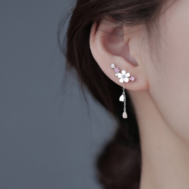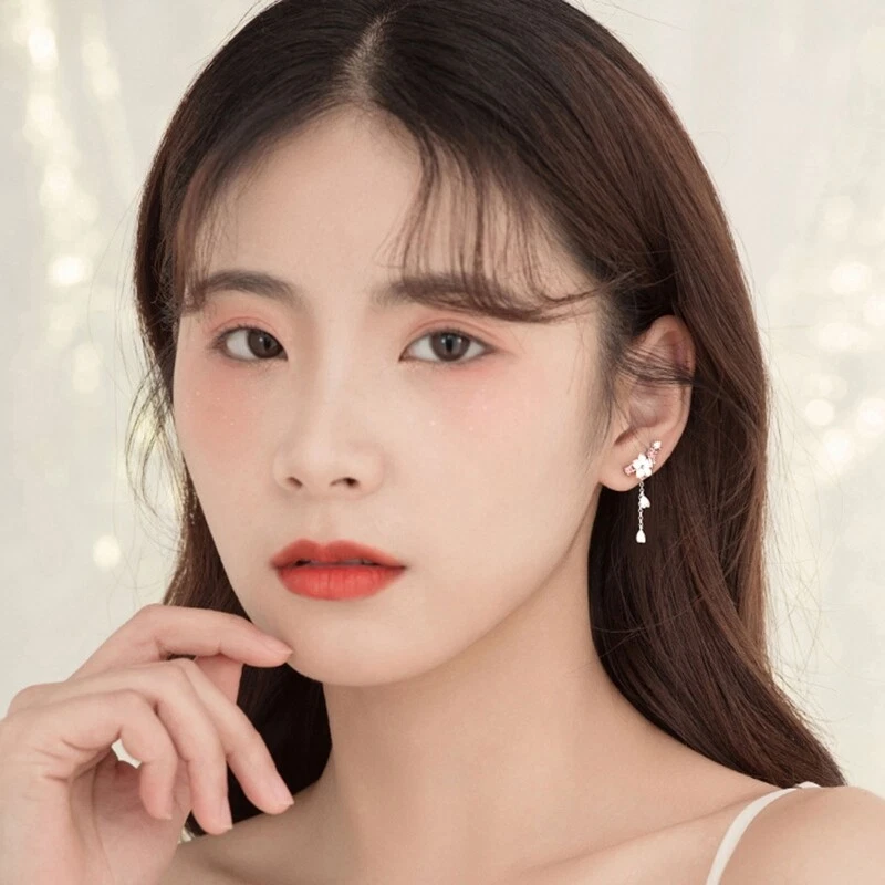 Features: Elegant flower wrap earrings with threader tassel chain, inlaid with high zircon, unique and fashion jewelry for female. birthday cocktail party holiday anniversary wedding lovers girlfriends or yourself. high It is not allergic for your skin. Cherry flower dangle gracefully, adding that for extra of charm to any look.Suits with any dress. formal, casual, fashion, trendy or vintage. It just can pair with any outfit perfectly. Specifications: Size: Approx.29x22mm/1.14x0.87inch Package Includes: 1 Pair of Earrings note: Please allow 1-2cm errors due to manual measurement,pls make sure that you do not mind before you order. Due to the difference between different monitors, the picture may not reflect the actual color of the item.