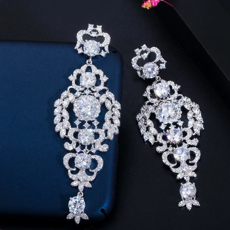 Long Chandelier Cubic Zirconia CZ Big Dangle Drop Sterlings Silver 925 Earrings Specifications : Condition: New Earring Size : 8.5 cm Material: Cubic Zirconia Features: 1. CZ Stone Material - Top Level Cubic Zirconia. Excellent Cut Simulated Diamond. Enjoy the dazzling sparkle from cubic zirconia Dangle Drop Earrings. 2. These Unique Dangling Drop Earrings are Suitable for Almost all of Sensitive Ears. These are the top Cubic Zirconia Women Earrings for Daily Wear. 3. Perfect for Various Occasions: Ideal for Wedding, Prom, Pageant, Parties, Homecoming, Black Tie Formal Affairs, Holidays , Valentine's Day, Mother's Day, Christmas, Anniversary, Graduation, Birthday and Special Occasions. 4. a Perfect Jewelry Gift for Women , Bride , Bridesmaid , Mother ,Wife , Lover , Fiancee , Girl Friend . Package Includes: 1 Pair of Earrings Payment Delivery details Terms of sales & Feedbacks About us & Contact us Our commitment Payment 1. We only ship item to your Ebay verified address . Please Make sure all address are the same 2.Please leave note in ebay when making the payment if you have any special request (colors/size). Delivery details We only send items to the registered eBay address.Items will be shipped within 2 business days from the date payment is received (not include public holiday and weekend) . As per eBay regulations, import duties, taxes, and customs charges are the buyer's responsibility. Please check with your country's customs office to determine what these additional costs may be prior to bidding or buying. Terms of sales & Feedbacks After-Sale Please contact us to request a return/replace/refund authorization .It will be best if you use ebay message to contact me. 1, Return and replacement request is available only the requests within 30 days after parcel received. 2, Returning the item as the same condition as received. Situation and solution Defectives ---Please contact us and provide a photo of the defective part. After situation confirmed,we will offer you refund/return/replacement according to the situation Not as Described ---Please contact us and provide a photo of the wrong part. After situation confirmed,we will offer you refund/return/replacement according to the situation Not Received ---Please undersatnding shipping on the way was out of our control ,because of the busy shipping season,holidays,bad weather or force majeure etc. It may be delay for days. But if it took too much time and not deliveried, Please message me, I will offer you solution for it. Feedbacks 1. If you are satisfied with our service, please leave us a + Good feedback and rate the details of the transaction (DSR) with a. . When you rate the shipping time part please take international transit into consideration.] Your recognition will make us more confident to develop business and serve you better. 2. Please contact us first if you have any problem with the items,we will solve it in time ! 3. Please do not leave Neutral or Negative Feedback before you contact us, Thanks For Your Business ! About us & Contact us Working time: Chinese time(Eastern eight zones):Monday to Friday ,9:00 am to 6:00 pm. We do not work on chinese legal holiday. Message reply: We will reply all messages within 24 hours of business time. Please contact us via ebay message, it was the best way for both you and us to solve problems. Any questions or anything you need, please feel free to contact us. Our commitment 1.Wholesale price will be offered to you if you need in bulk ! 2.About Size
