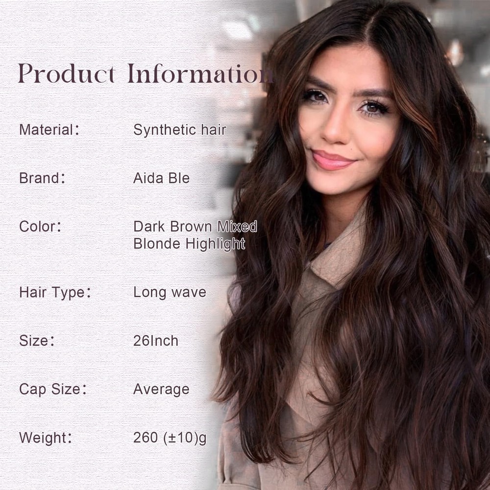 Product Description: This long wavy red wigs for women is high quality synthetic hair, odorless and not easy to knot, this curly red wig is very soft and silky, has a natural look. The wigs are easy to install, don't take you long time, and are magic that can make you fashionable fast ! There is an adjustable band on the cap to fit different head shapes, So don't worry that you won't be able to wear it . Burgundy wig is gorgeous and stylish, suitable for daily and party wear, also can be used as a costume wig. Wearing this stylish wig will make you receive more compliments from your friends and family! Why Choose Our burgundy wig for Women? 1.This middle part wig for women is fit for every size and shape head with its adjustable straps and breathable rose net. Easy to put on and off . 2.This dark red wig by senior wig designers, natural color, high temperature styling to make the volume long-lasting,Can be used for a long time and saves money. 3.This curly red wig is suitable for parties, travel, wedding, business trips and many other scenarios,It also can be used as Halloween wigs , Holiday Celebration Wigs,birthday party wigs, cosplay wigs , It can also be a stunning gift choice for mothers, girlfriends and sisters . 4. Our red wig pictures are taken by ourselves with real wigs , Because of the difference between the monitor and the light.It's normal that a slight difference in the color. Specification: Product Name: Wine Red Wig for Women Type of Hair: Synthetic wig Hair Length: About 26 Inch burgundy wig Hair Color: burgundy wig Part: Middle Part wig Kind Tips: Wine red wig all wig will shed slightly especially when you wear them for the first time, which is normal Making Material: The long Dark Brown Mixed Blonde Highlight wig is made of high-quality synthetic hair. After high-temperature treatment, the ombre blonde wig has a natural color, soft hair, fashionable shape, no peculiar smell, and will not cause skin itching. The above advantages have been verified by everyone, please rest assured to use them. Long Chocolate Brown Wig Features: This high-density Chocolate Brown wig is recognized by many fashionable women. The scalp is handcrafted using state-of-the-art technology and materials for even more authenticity. Designers use high-temperature water to shape the wig while making the wig hair softer and more natural in color. Product Description: Long Chocolate Brown Mixed Blonde Highlight Wig with Hair Cap Average Size (21"-22.5") This size is suitable for most women, and there are two elastic bands in the cap, you can adjust the straps according to your head. There are two clips on the inside of the hair cap to match the elastic band, so you don't have to worry about the wig falling off. Economical and practical: The Chocolate Brown wavy wig is easy to install and can be worn quickly, so it is suitable for any occasion, wedding, party, fashionable styling, and natural hair color cosplay part can also be used. Brand after-sales service: The long blonde ombre blonde wig is equipped with an after-sales service specialist. if you have any questions, please feel free to contact us, we will reply within 24 hours.