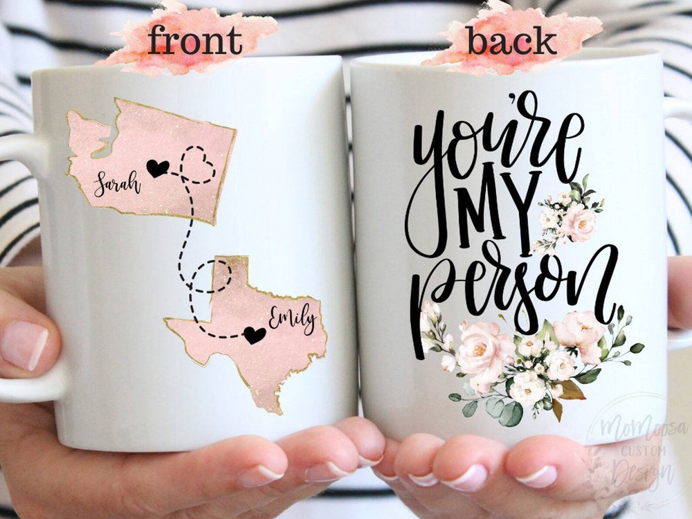 You're My Person Coffee Mug Long Distance Friendship Mug State To State Best Product Details.. This high quality 11oz. ceramic white mug has a premium hard coat that provides crisp and vibrant color reproduction sure to last for years. Perfect for all hot & cold beverages. The highest quality printing possible is used. It will never fade no matter how many times you wash it. Material: 100% Ceramic. Print both sides. Dishwasher and Microwave Safe. High Gloss + Premium White Finish. Printed in the U.S.A. Personalized & Custom. We support personalized and custom mug to add custom, when placing an order, you can add notes to the "order note" in shipping address section. Also you can contact us directly via message. Shipping Info. Ready to ship in 1 to 2 business days, All products are made-to-order and proudly printed in the United States. Shipped by USPS and DHL, You will receive your order in 5-7 days. Replace & Refund. All products are defective during shipping broken, chipped will be replaced free of charge. You are not satisfied with the product, we will refund 100% money to you. If any other issues arise, please do not hesitate to message, we would be more than happy to assist you.