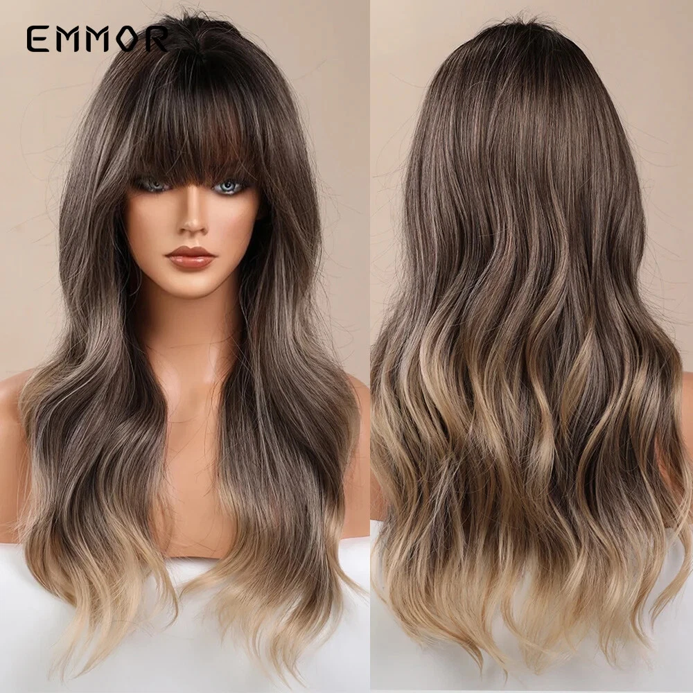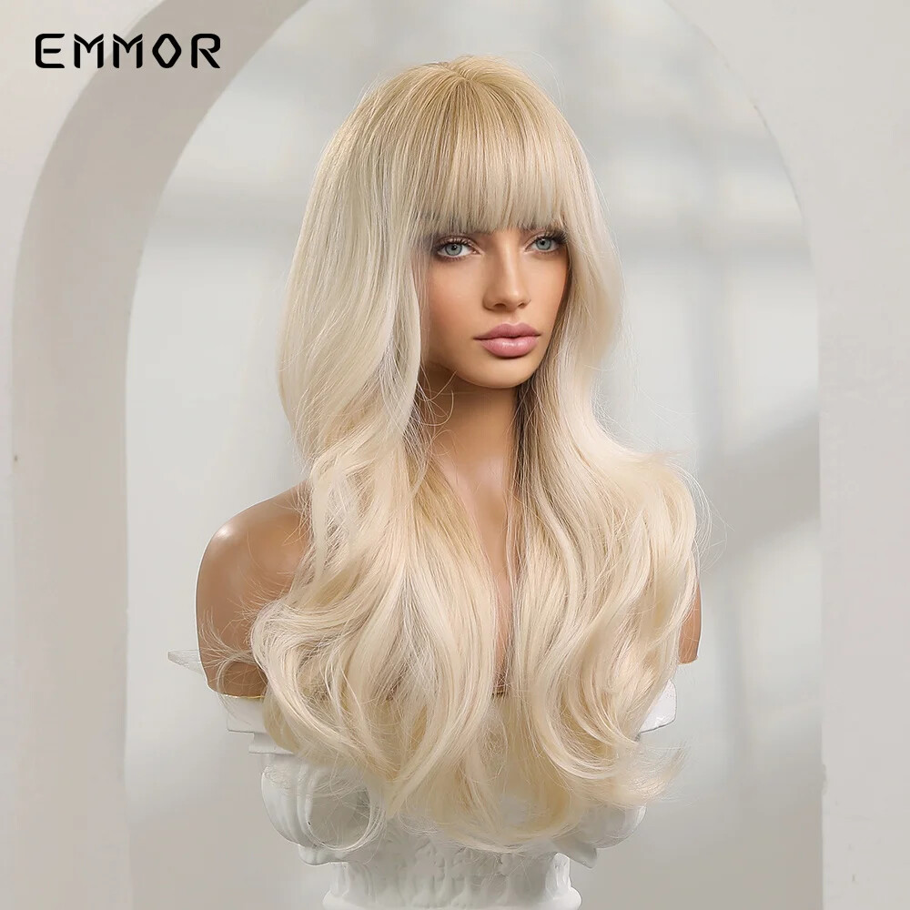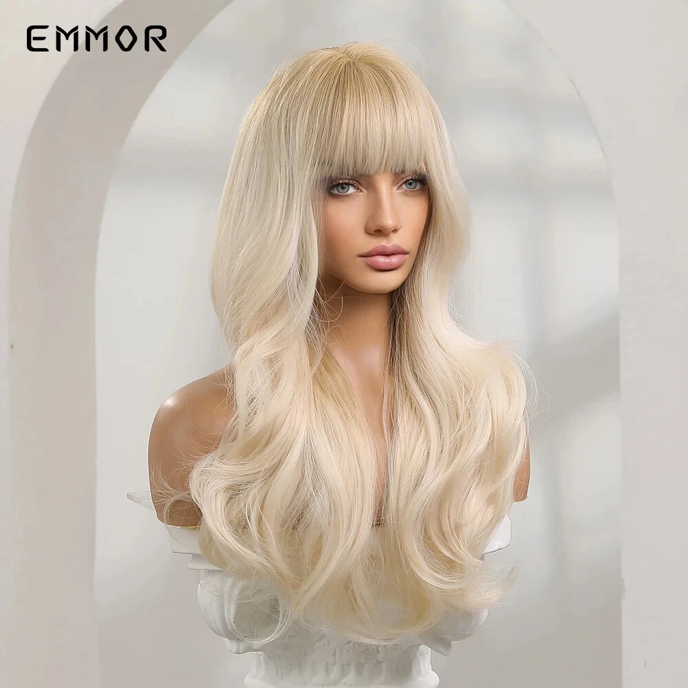 Ombre Blonde Platinum Wigs Long Synthetic Wavy Wig for Women with Bangs Party Daily Heat Resistant Fibre Hair Wigs Package includes: 1 *wig + 1*wig cap Material: Our wig is made of high-quality synthetic hair. The natural color looks like real human hair. It is soft,skin-friendly,soft and comfortable. Features: High temperature fiber wig, which can withstand a high temperature of 150 degrees Celsius (300 degrees Fahrenheit) Hat and size: The hat size is free size. The 100% breathable net inside the net makes you feel comfortable when wearing it. There are two adjustment straps on both sides of the wig, you can adjust him to the size of the head that suits you. Occasions: The realistic wig can help you perfectly match all occasions, whether it is daily work, weddings, parties, concerts, role-playing, theme parties, Halloween or video shooting, it is your best choice , Let you become the focus of the crowd. This is also a great gift for relatives and friends. Reminder: If you don't know how to care for the wig, please feel free to contact us.We have a large factory with 600 people, please don't worry about quality issues, and the product pictures are all real shots.