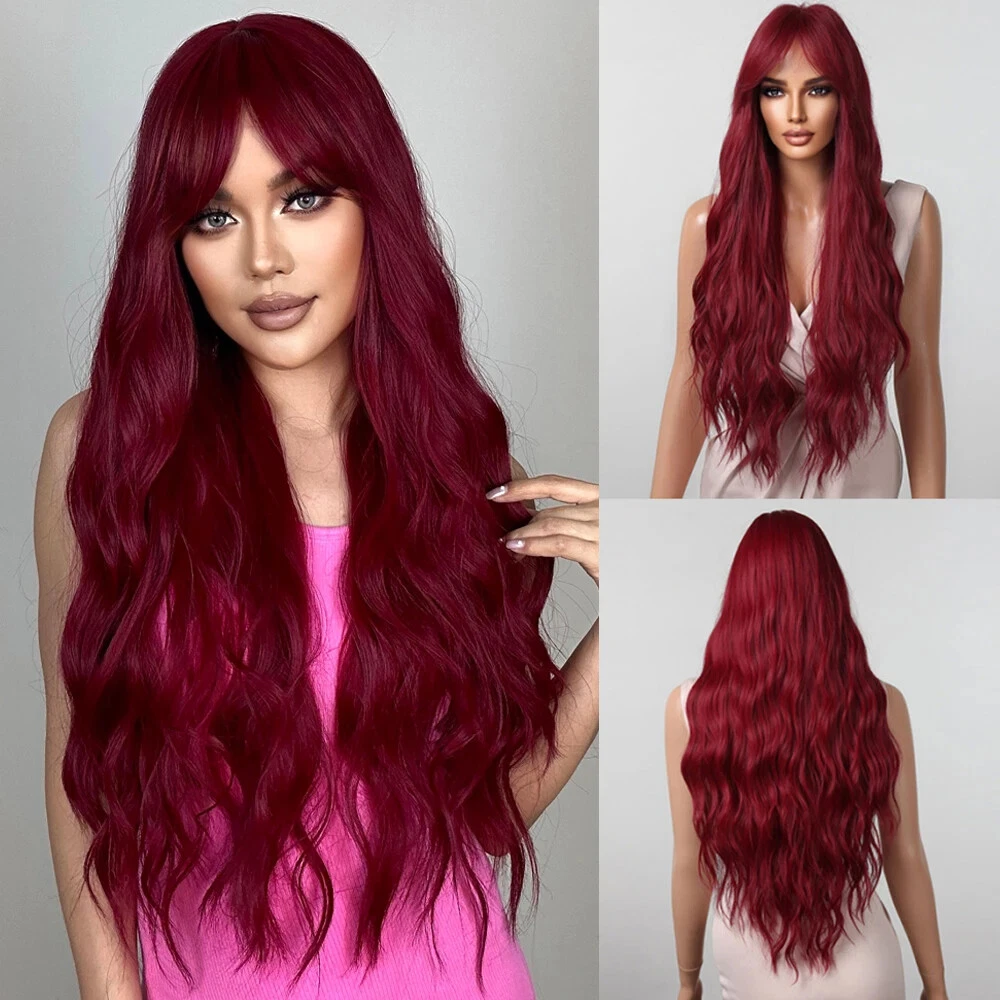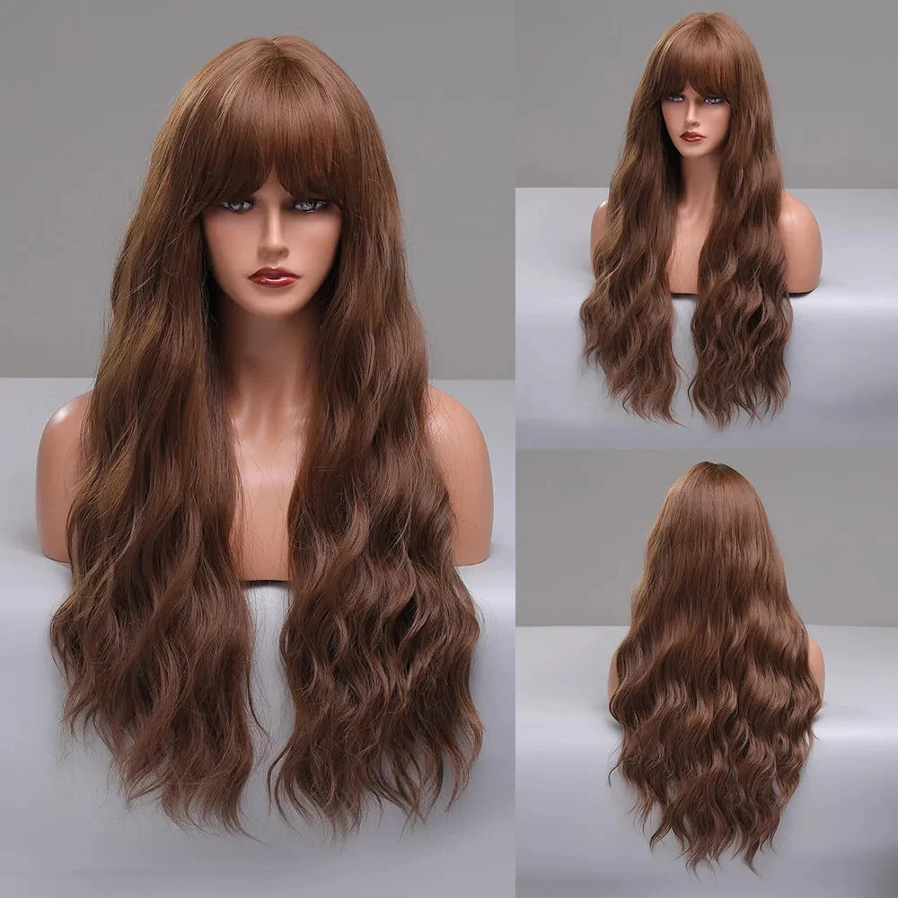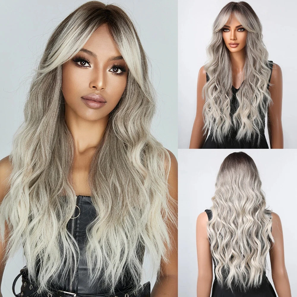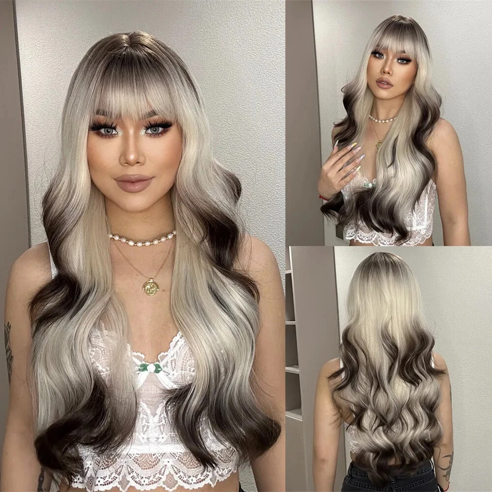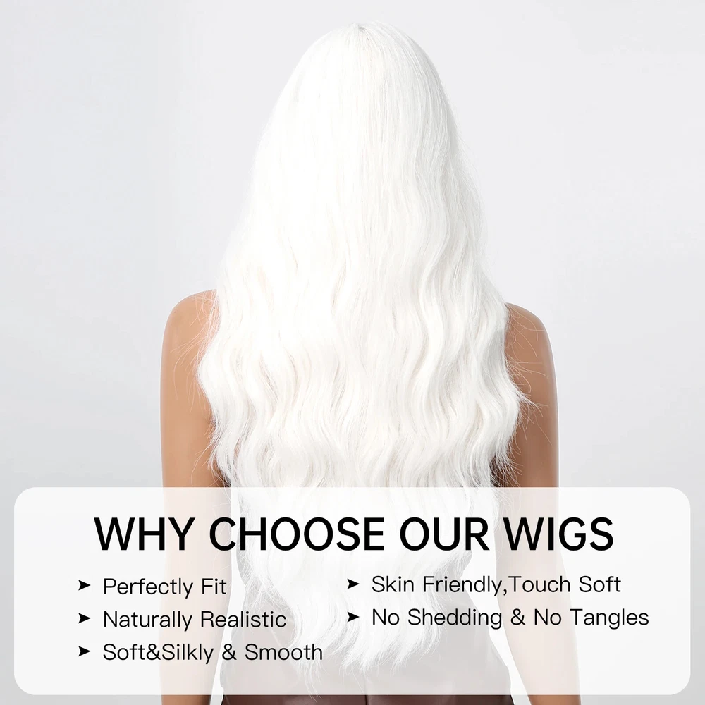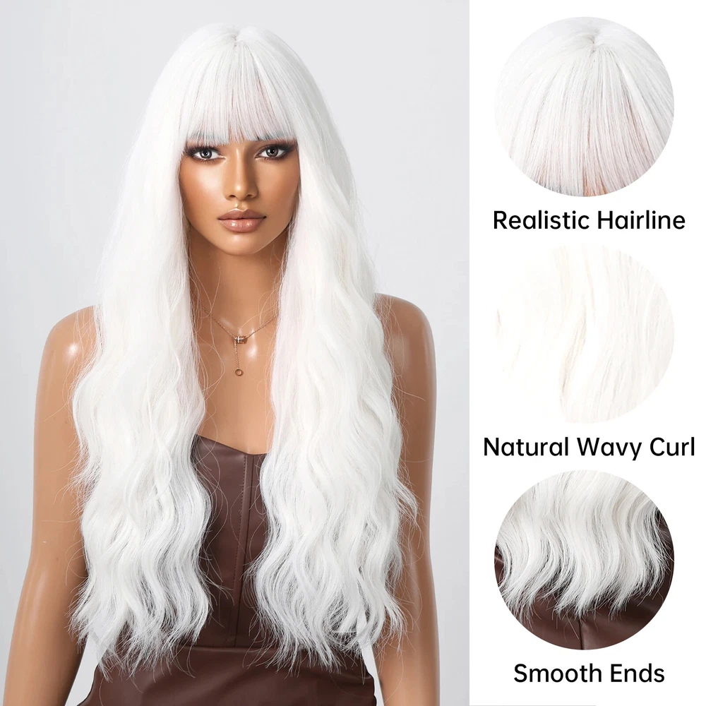 HomeLong Wavy Synthetic Hair Wig with Bangs White Cosplay Wigs Hair High Temperature