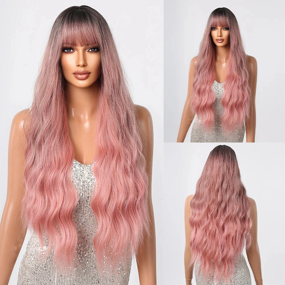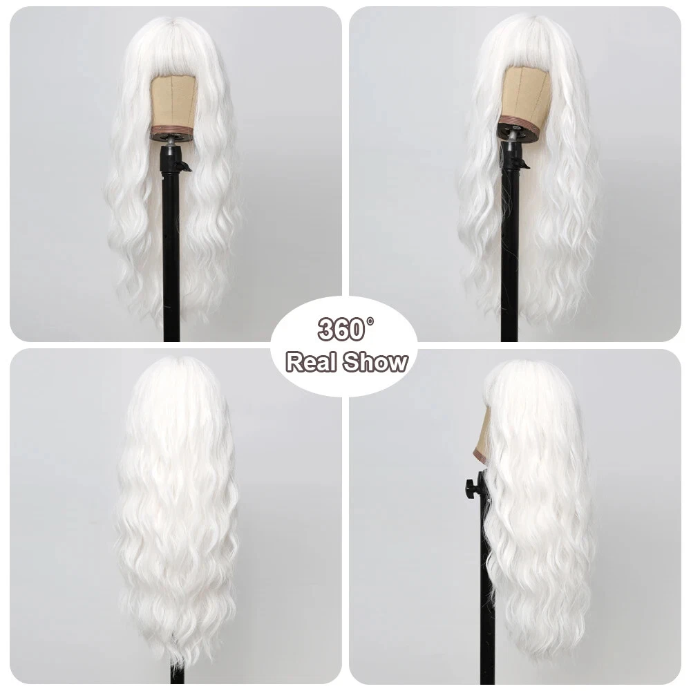 Long Wavy Synthetic Hair Wig with Bangs White Cosplay Wigs Hair High Temperature
