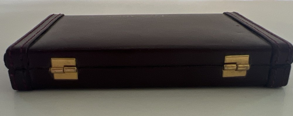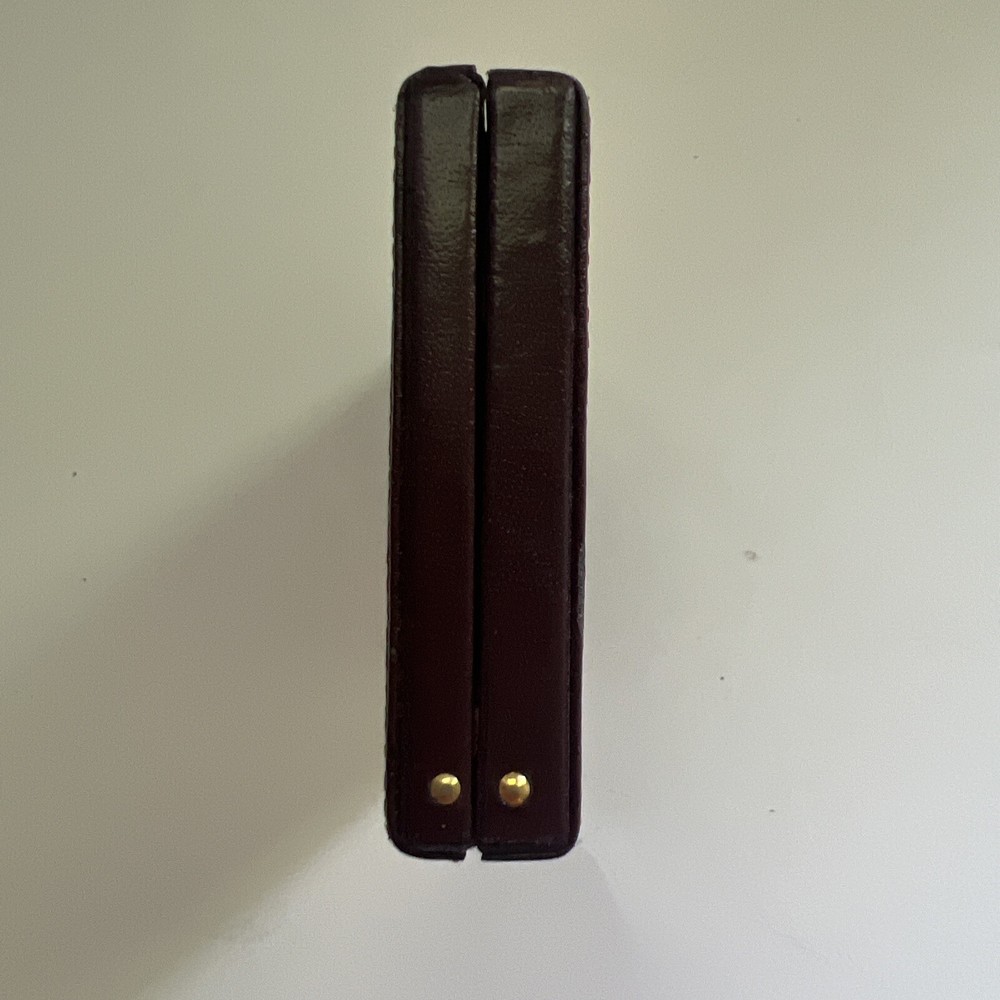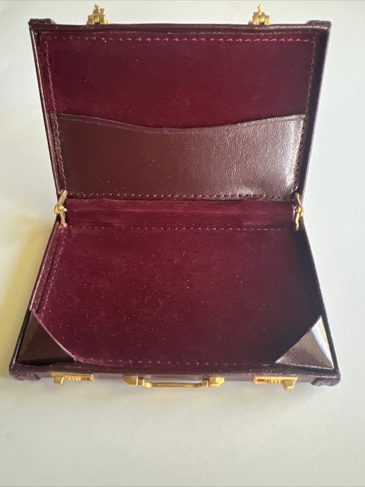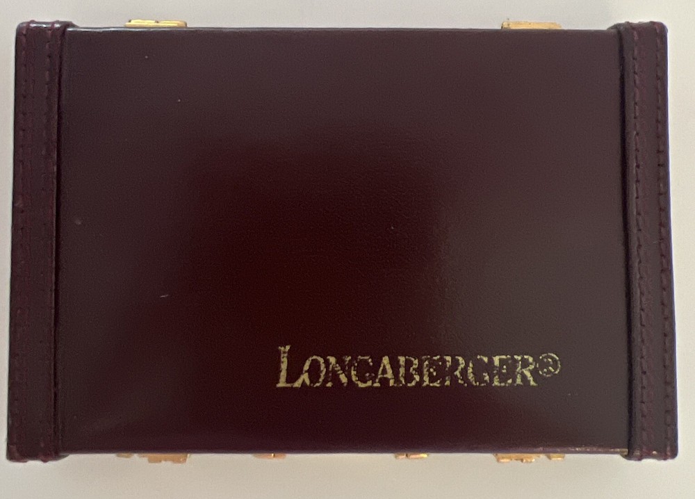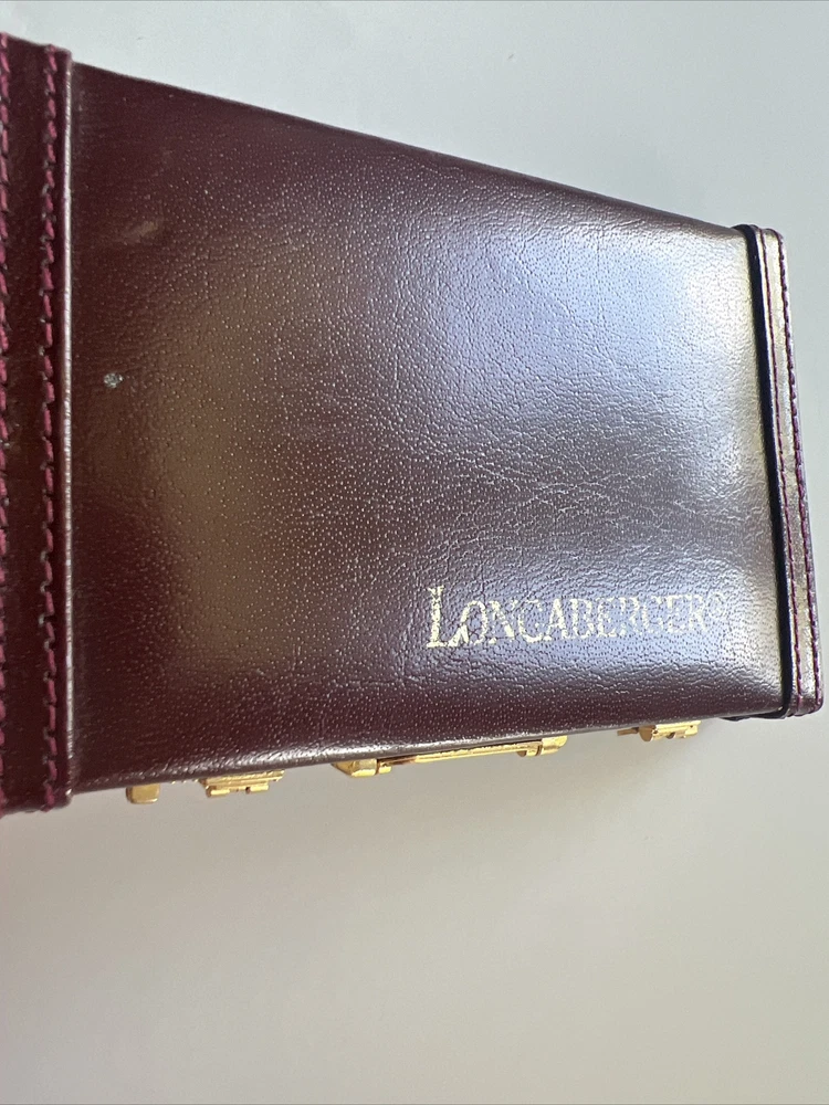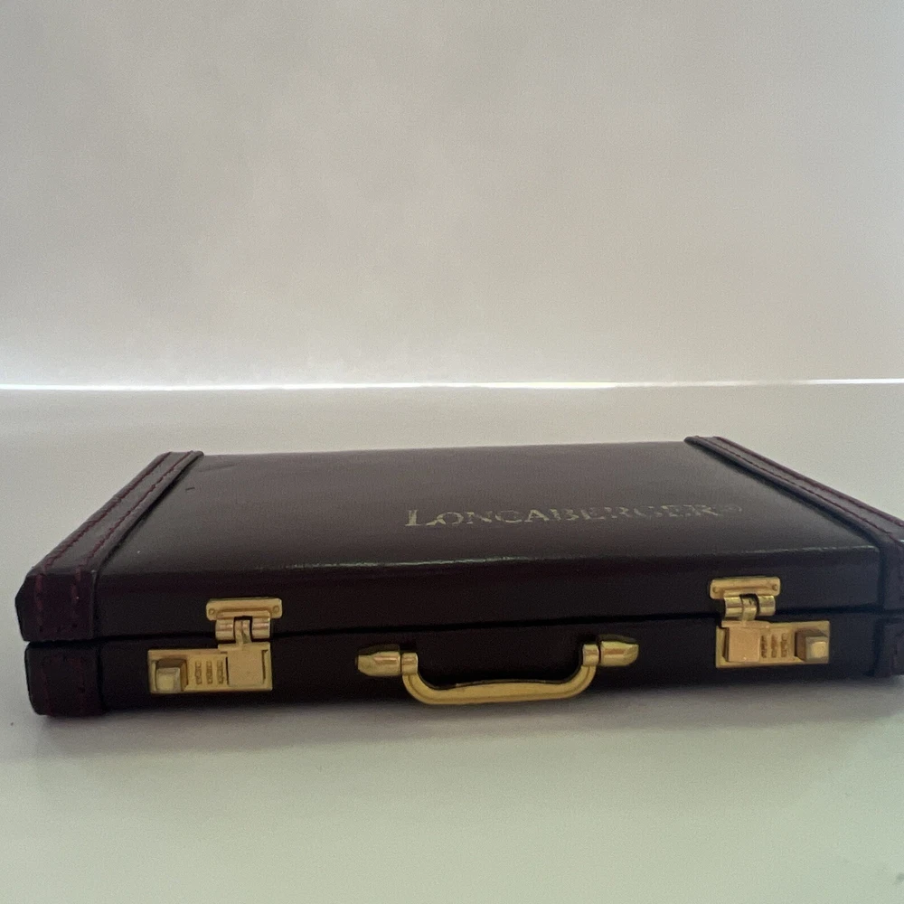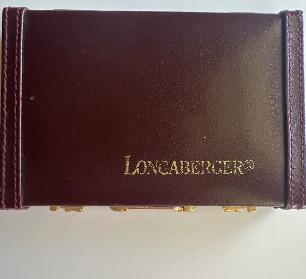 This Longaberger cute mini suitcase style card wallet is perfect for professionals on the go. With a sleek brown leather design, it's both stylish and practical, it's the perfect size to fit in any purse or pocket. The wallet features a spacious credit card slots, making it easy to stay organized and keep all of your important cards in one place. Whether you're traveling for business or just running errands around town, this Longaberger card case is sure to become your go-to accessory. See last two photos for flaws.