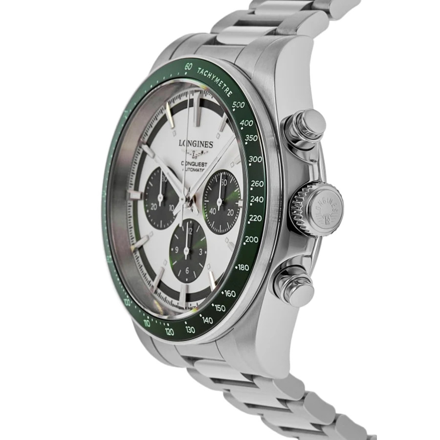 Longines Conquest Automatic Chronograph Matte Silver Dial Steel Men's L3.835.4.02.6 100% Brand New & Authentic Product Shipped Within 3 Days Top Seller Reviews speak for themselves Click to view Shop risk free with WatchMaxx Money Back Guarantee 5 Year Warranty Usually ships within 3 business days of receiving payment. We accept PayPal. For other payment options please contact us. Details Warranty Return Policy Shipping & Tax About Us Questions? Product Details Case Case Material Ceramic & Stainless Steel Case Description Brushed and Polished Stainless Steel Case Finish Brushed and Polished Case Shape Unique Case Diameter 42.00mm Case Thickness 14.30mm Case Back Transparent Bezel Fixed. Green Ceramic. Tachymeter Scale Crystal Scratch Resistant Sapphire Crown Screw Down Dial Dial Color Silver Dial Description Luminous Silver Tone Hands and Stick Hour Markers with Minute Markers Around the Outer Rim and 3 Sub-dials on a Matt Silver Dial Dial Markers Stick Hand Color Silver Sub-Dials Small Seconds, 30 Minute and 12 Hours Functions Power Reserve, Hour, Minute, Second, Chronograph and Speed Movement Movement Type Automatic Self Winding Engine Longines L898 Power Reserve Approx. 59 Hours Movement Description Swiss Automatic. Chronograph Additional Information Water Resistant 100 Meters - 330 Feet Style Fashion Warranty 5 Year WatchMaxx Warranty Band Band Material Stainless Steel Band Finish Brushed and Polished Band Color Silver Band Description Brushed and Polished Stainless Steel Bracelet Band Type Watch band Clasp Type Deployment with Push Button and Foldover Clasp Description Brushed and Polished Stainless Steel Additional Info Also known as L38354026, 38354026, 3.835.4.02.6 Warranty The length of the warranty period for all items are specified in the item details, and are guaranteed from the date of purchase. Warranty covers only defects in manufacturing or materials, movement, and battery replacement. Warranty excludes scratches or changes to the finish, damage to the glass, crystal, crown, stem, case, strap, or bracelet. Damage caused by excessive wear-and-tear and/or physical abuse, or resulting from wear under conditions exceeding the manufacturer's water resistance limitations is excluded from the warranty. WatchMaxx will repair the product, including the cost of all parts and labor during the warranty period. WatchMaxx will return the repaired or replacement item at no charge to the customer. Warranty return parcels must be clearly labeled with a return authorization number obtained by contacting WatchMaxx customer service. Parcels without a clearly visible valid return authorization number will be refused. Goods must be returned via a traceable carrier, such as FedEx, United Parcel Service (UPS) or the United States Postal Service (USPS), with insurance and delivery prepaid by the purchaser. Parcels shipped collect will be refused. The customer is liable for loss or damage in transit. WatchMaxx disclaims any liability for consequential or incidental damages for breach of written or implied warranty of this item, including merchantability or fitness for a particular purpose. This warranty gives you specific legal rights and you may have other rights that vary from state to state. Some states do not allow the exclusion or limitation of incidental or consequential damages, so the above limitation may not apply to you. Return Policy After receiving the item, contact seller within: 30 days. Refund will be given as: Money back. Return shipping: Seller pays return shipping. All items purchased from WatchMaxx may be returned with the following conditions, except those marked as "Final Sale": Merchandise must be returned within 30 days of receipt, in original, unused condition with all original tape, plastic protectors, and stickers intact and having never been removed. All returned items, whether for refund, repair or exchange, must be clearly labeled with a return authorization number obtained by contacting WatchMaxx customer service via email to WatchMaxx. Parcels without a clearly visible valid return authorization number will be refused. Goods must be returned via a traceable carrier, such as FedEx, United Parcel Service (UPS) or the United States Postal Service (USPS), with insurance and delivery to WatchMaxx prepaid by the purchaser. Parcels shipped collect will be refused. The customer is liable for loss or damage in transit. Refund of the purchase price will be issued in the same form as payment received. WatchMaxx policy is to attempt to contact the purchaser for 3 business days to resolve delivery problems or if delivery was refused. After 3 business days, such items will be regarded as returned and eligible for refund subject to the conditions above. Shipping in the USA Expedited Shipping & Insurance Free Next Day Air Shipping & Insurance $15.00 Sales Tax Taxes may be applicable at checkout. Please refer to eBay policies. About Us We are a family owned business with over 20 years of experience selling fine watches, and have been selling investment-quality timepieces online since 2004. Today, WatchMaxx is among the leading online retailers of luxury watches. We are proud of our reputation, and enjoy high ratings by independent sources and customers. Everything we sell is 100% genuine, with no fakes, copies, replicas or any other deception. Every item ships in the original manufacturer's packaging. All items are brand new (unless stated otherwise) and engraved with the original manufacturer serial numbers. We deliver the brand-name watches people love, for discount prices significantly below suggested retail. Frequently Asked Questions Is the item genuine and new? Every item we sell is guaranteed to be 100% authentic and brand new. Can I trust WatchMaxx.com? WatchMaxx is exactly the kind of source you can trust, because you can check our reputation before you buy, return the product if you are not satisfied, and enjoy your purchase knowing that it is guaranteed. Can I return it? Y