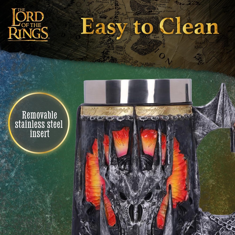 Officially Licensed Lord of The Rings Sauron Tankard, Grey, 15.5cm Dark Lord's Tankard: Features Sauron's helmet and Ringwraiths, with the handle formed by Barad-Dur and the Eye of Sauron, adding a touch of menace to your drinkware. Intricate Hand-Painting: Hand-painted with precision, each tankard features vibrant colors and detailed design, making it a standout piece in any collection. Robust Resin Build: Crafted from premium resin, this 15.5cm tankard offers durability and a striking visual appeal, ideal for both use and display. Journey to Middle-Earth: Officially licensed, collectible merchandise for every Lord of the Rings fan. Ideal gifts for fantasy lovers of Frodo, Sam, Gollum, and their adventures. Discover : Creators of original, officially licensed pop culture merchandise, giftware, and collectibles from top music, gaming, TV, and film brands. Elevate your collection with us.