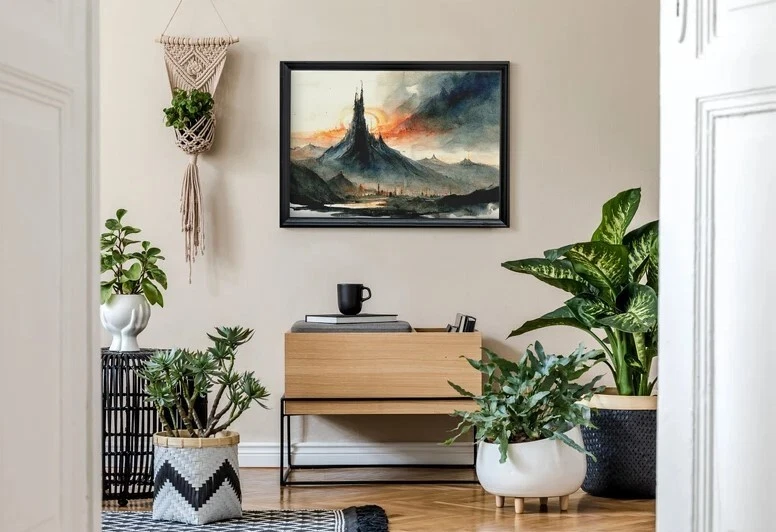 Lord of the Rings Mordor Watercolor Painting, Fantasy Art