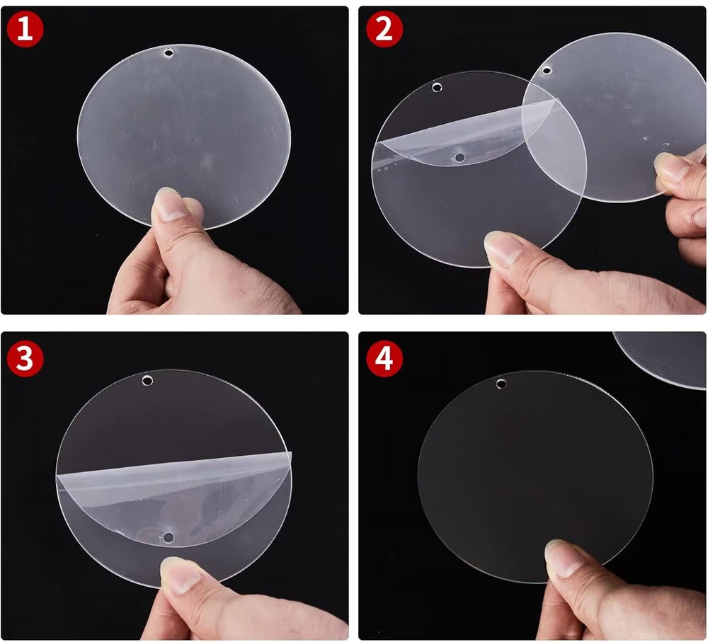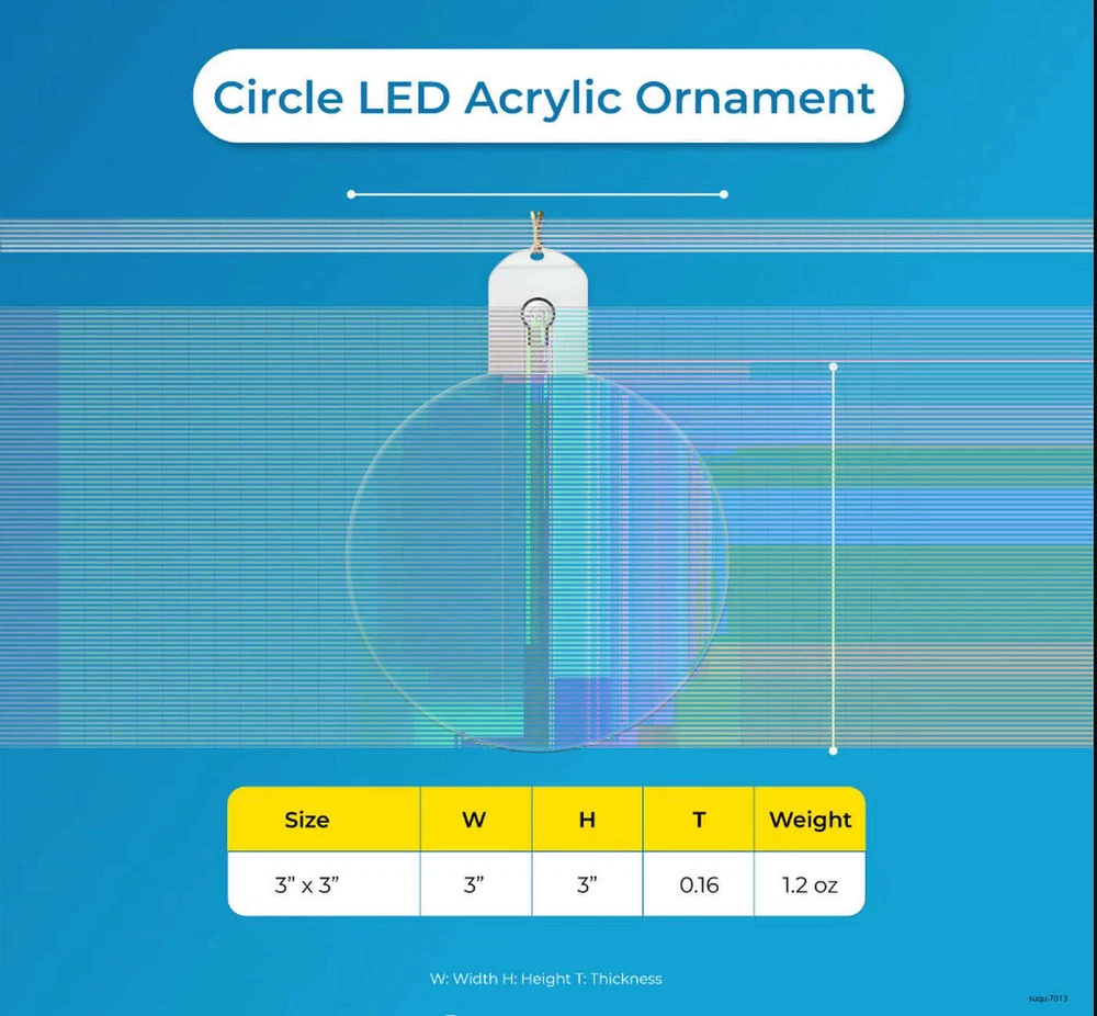 Occasion: These ornaments can be used yearly and add a special touch to your holiday decor, especially for Christmas. Display these cherished ornaments on your Christmas tree or throughout your home for holiday decor to showcase your unique style. A perfect and unique gift that will be treasured for years. Material: The ornaments are made from transparent acrylic plexiglass, ensuring durability and lightness while presenting a exquisite and elegant design. Type: Featuring seven changeable colors: blue, green, red, yellow, cyan, purple, and white, these ornaments offer boundless possibilities for creating a visually stunning display that reflects your unique style. Choose to set the lights on a single color that complements your theme, or enjoy the captivating effect of a rotating flash, adding a dynamic touch to your decorations. Each ornament comes with a color-changing button, a golden hanging string, bonus a micro USB charging cable (4-6 hours battery life). This makes them a convenient addition to your decoration collection. Size: Round shape – 3-inch diameter and 0.16-inch thickness. Protective seal: Remove the protective seal from one side before using