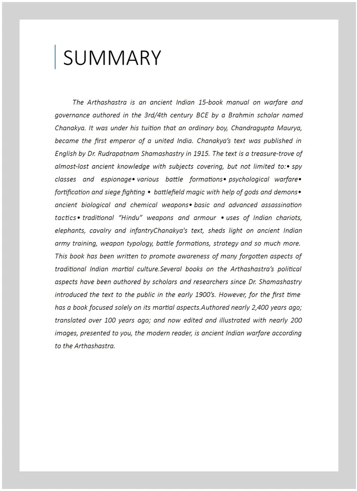 Lost Warfare of India : An Illustrated Guide, Paperback by Cummins, Antony; Sagoo, Harjit Singh, ISBN 1537272209, ISBN-13 9781537272207, Brand New, Free shipping in the US The Arthashastra is an ancient Indian 15-book manual on warfare and governance authored in the 3rd/4th century BCE by a Brahmin scholar named Chanakya. It was under his tuition that an ordinary boy, Chandragupta Maurya, became the first emperor of a united India. Chanakya’s text was published in English by Dr. Rudrapatnam Shamashastry in 1915. The text is a treasure-trove of almost-lost ancient knowledge with subjects covering, but not limited to:• spy classes and espionage• various battle formations• psychological warfare• fortification and siege fighting • battlefield magic with help of gods and demons• ancient biological and chemical weapons• basic and advanced assassination tactics• traditional “Hindu” weapons and armour • uses of Indian chariots, elephants, cavalry and infantryChanakya's text, sheds light on ancient Indian army training, weapon typology, battle formations, strategy and so much more. This book has been written to promote awareness of many forgotten aspects of traditional Indian martial books on the Arthashastra’s political aspects have been authored by scholars and researchers since Dr. Shamashastry introduced the text to the public in the early 1900’s. However, for the first time has a book focused solely on its martial nearly 2,400 years ago; translated over 100 years ago; and now edited and illustrated with nearly 200 images, presented to you, the modern reader, is ancient Indian warfare according to the Arthashastra.